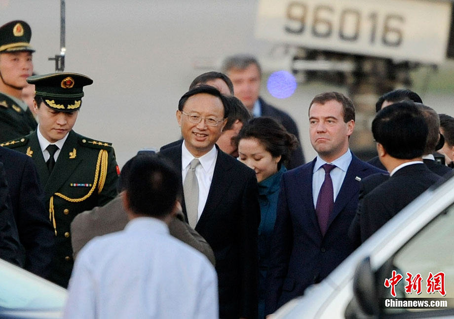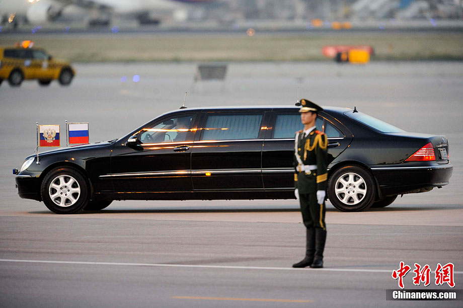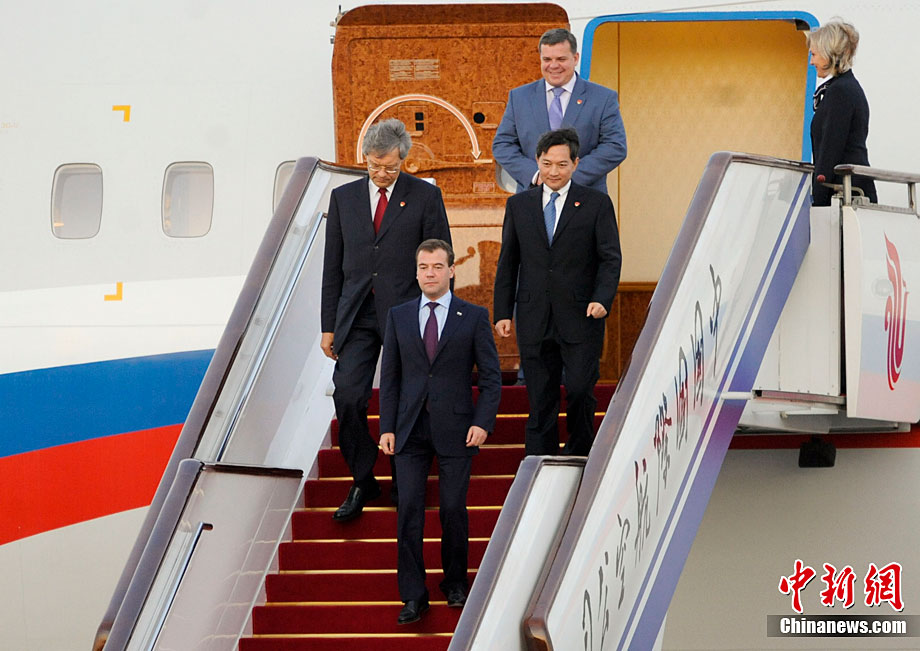 9月26日,俄羅斯總統(tǒng)梅德韋杰夫乘專機抵達北京。北京是他此次訪華行程的第二站。中新社記者 廖攀 攝