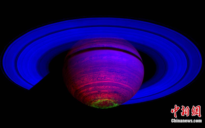 近日,卡西尼號(hào)飛船拍攝到了令人難以置信的土星北極光,科學(xué)家稱對(duì)土星極光的詳細(xì)研究可以幫助人類理解地球上的極光產(chǎn)生原理,以及磁場(chǎng)與最頂層大氣之間的互相作用。土星極光圖像均由卡西尼號(hào)上所搭載的可見光及紅外光譜儀(VIMS)所攝。這些新的偽色圖片展示了土星南極閃現(xiàn)出超過20小時(shí)的綠色極光,而這段時(shí)間相當(dāng)于土星的兩天。
