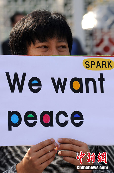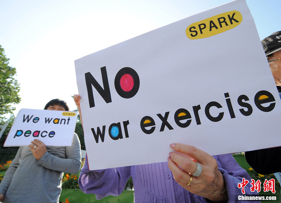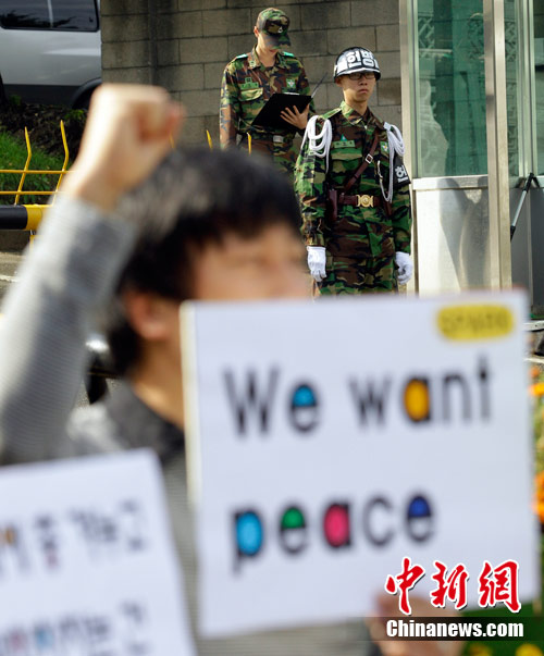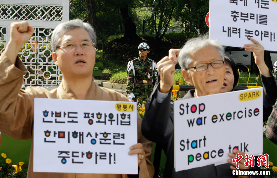 韓國反戰(zhàn)人士舉行集會抗議韓美軍演