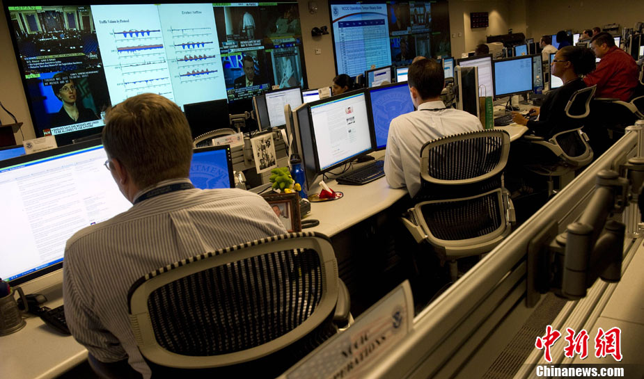 美國國土安全部27日宣布,將與12個國家合作,舉行龐大的電腦網(wǎng)絡(luò)攻擊演習(xí),以提高網(wǎng)上保安。該項網(wǎng)上攻擊演習(xí)名為“數(shù)碼風(fēng)暴三”,將模擬重要基建設(shè)施受到大規(guī)模網(wǎng)上攻擊,各部門如何協(xié)作,減低影響。12個國家包括澳大利亞、英國、加拿大、法國、德國、匈牙利、日本、意大利、荷蘭、新西蘭、瑞典及瑞士。圖為近日,美國正在準(zhǔn)備“數(shù)碼風(fēng)暴三”網(wǎng)絡(luò)攻擊演習(xí)。