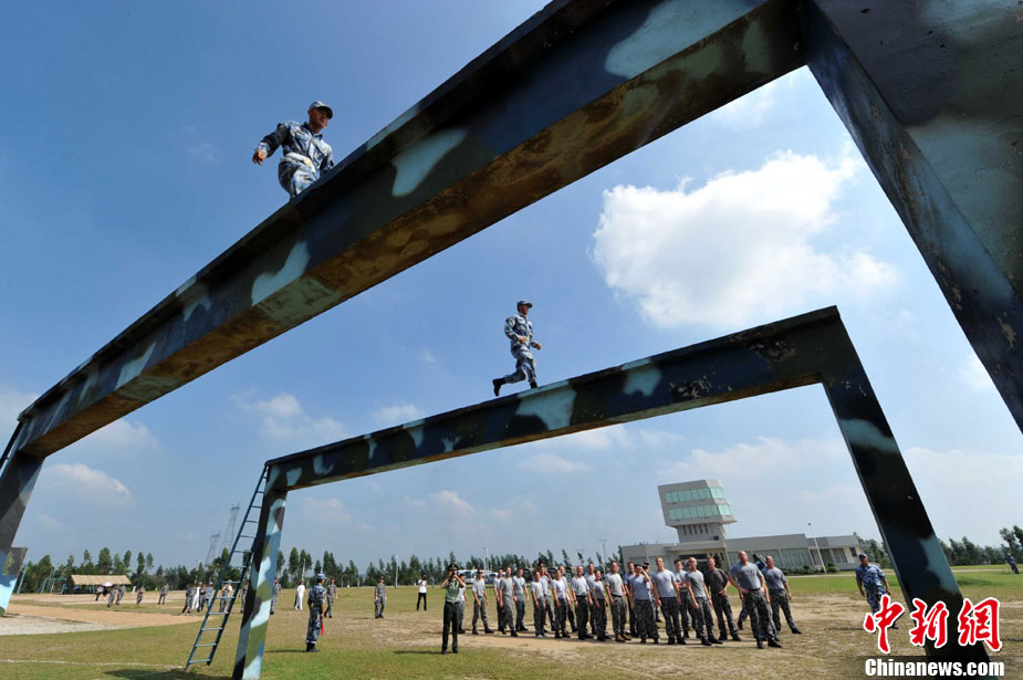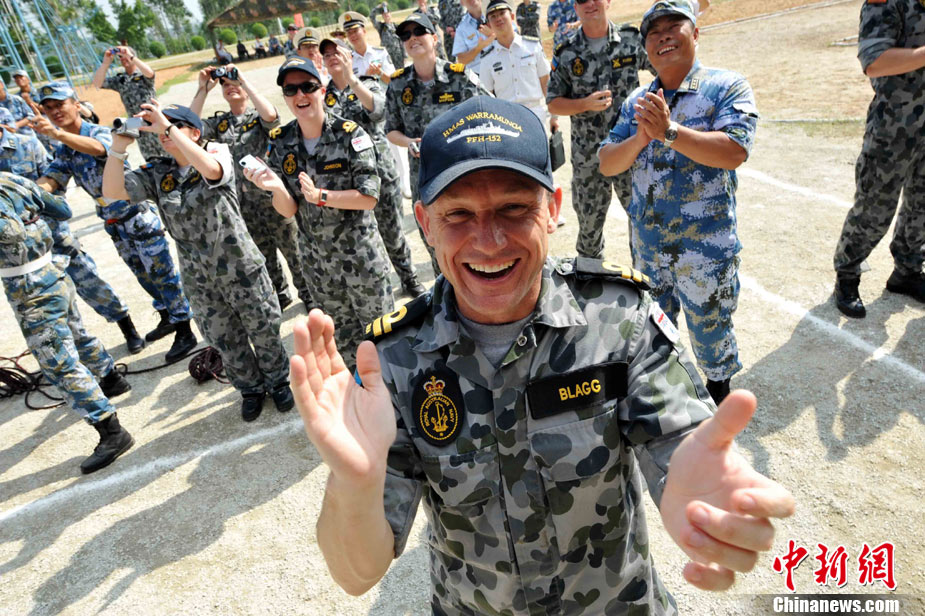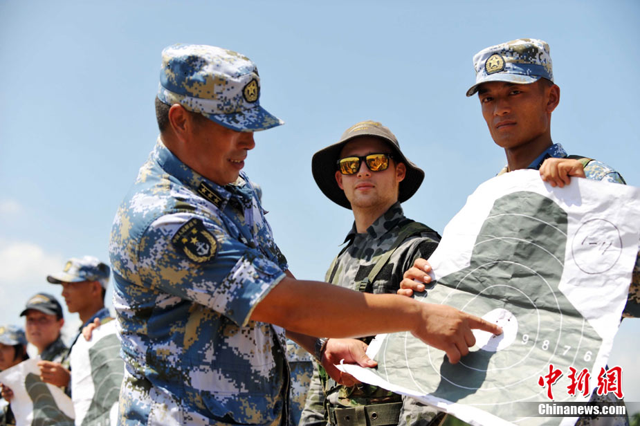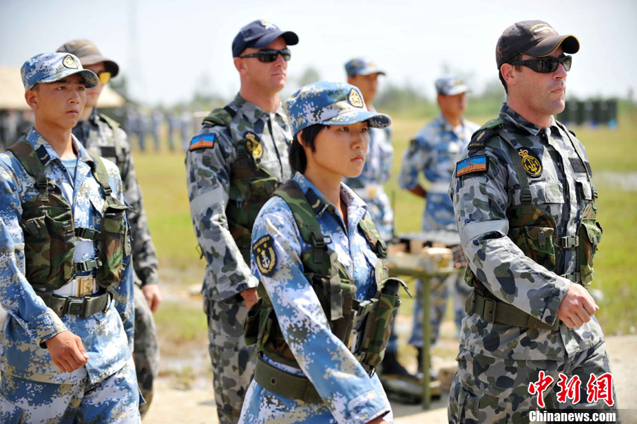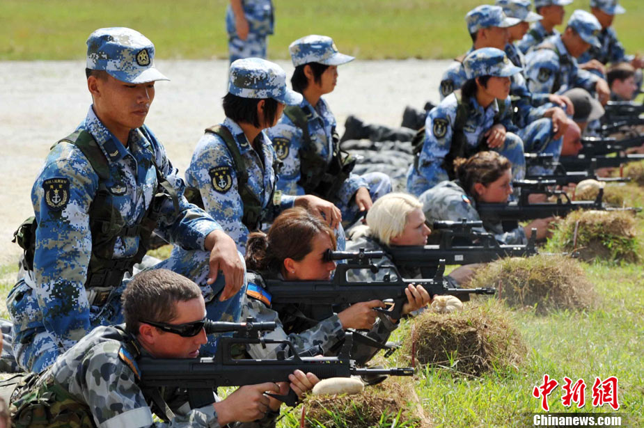 9月29日,中國南海艦隊某陸戰(zhàn)隊與應(yīng)邀來華訪問的澳大利亞海軍陸戰(zhàn)隊在湛江某部訓(xùn)練場舉行聯(lián)合訓(xùn)練,包括攀登、兩棲障礙、射擊等。中新社記者 陳文 攝