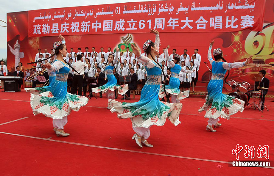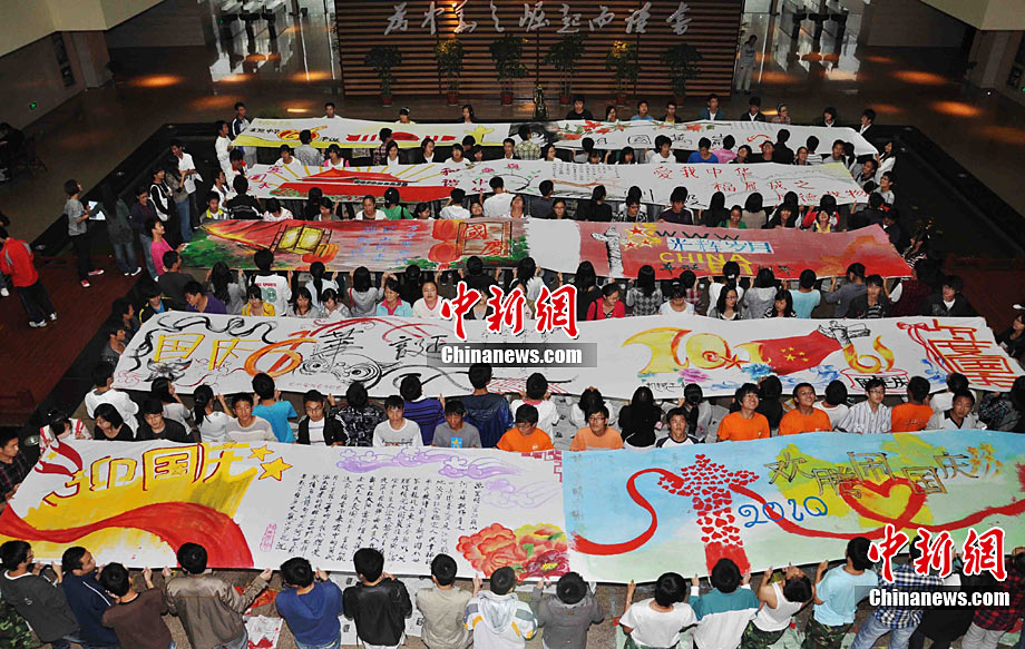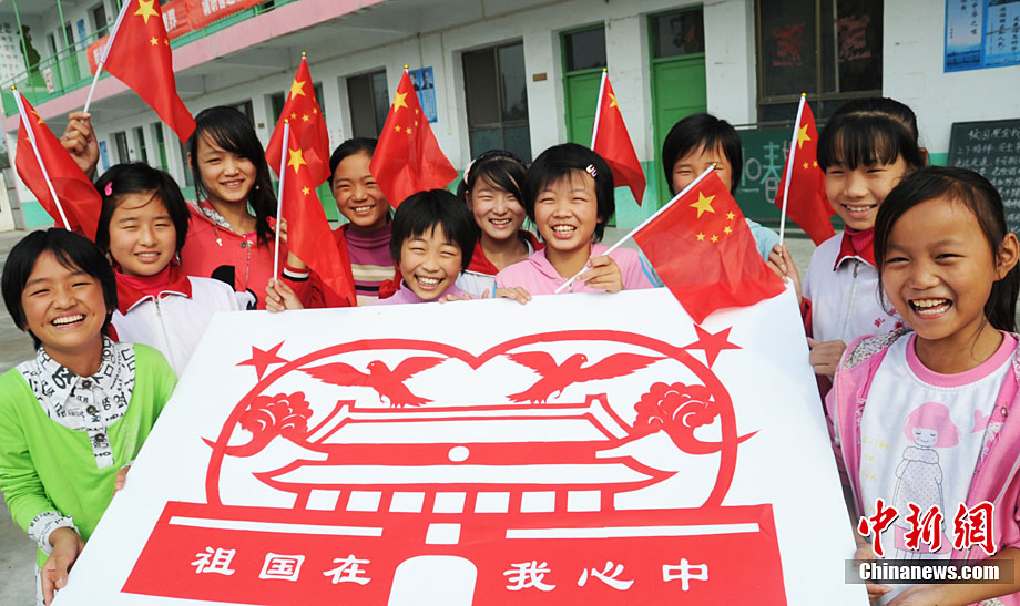 9月27日,一場(chǎng)以“我驕傲,我是中國(guó)人”為主題的國(guó)慶61周年誦讀繪畫(huà)賽活動(dòng)在蘇州市一所小學(xué)校舉行,該校百余名一、二年級(jí)學(xué)生以集體誦讀和繪畫(huà)展示等形式,表達(dá)對(duì)偉大的祖國(guó)贊美與衷心祝福。王建中 攝 圖片來(lái)源:cnsphoto