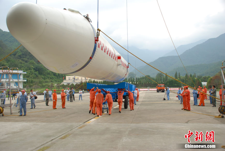 繼嫦娥一號衛(wèi)星圓滿完成我國首次繞月探測工程之后,嫦娥二號繞月探測衛(wèi)星作為我國探月工程二期的先行者,又踏上了奔月的征程。2010年9月中旬以來,西昌衛(wèi)星基地緊鑼密鼓地為“嫦娥二號”衛(wèi)星發(fā)射做了大量的準(zhǔn)備工作。圖為吊裝火箭助推場景。 中新社發(fā) 張雷 王銳 攝 圖片來源:cnsphoto