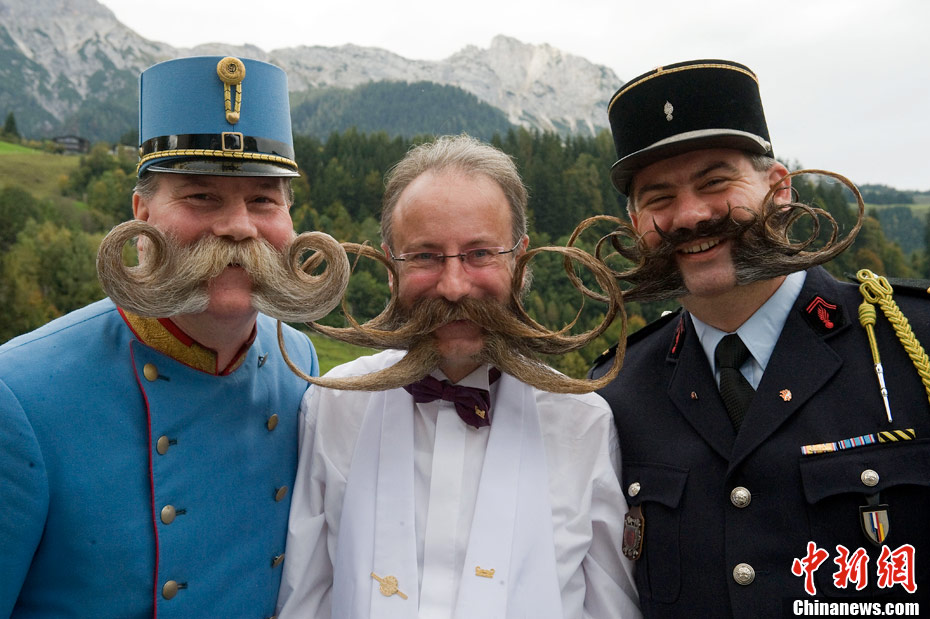 當?shù)貢r間10月2日,“2010歐洲胡須錦標賽”在奧地利舉辦,選手們“帶著”精心修整的美鬢參加大賽。