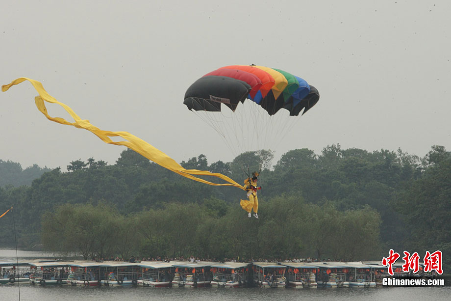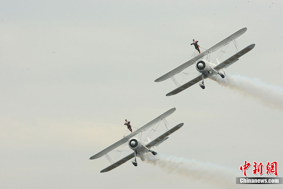 重慶上演空中特技 女郎機(jī)翼上跳空中芭蕾