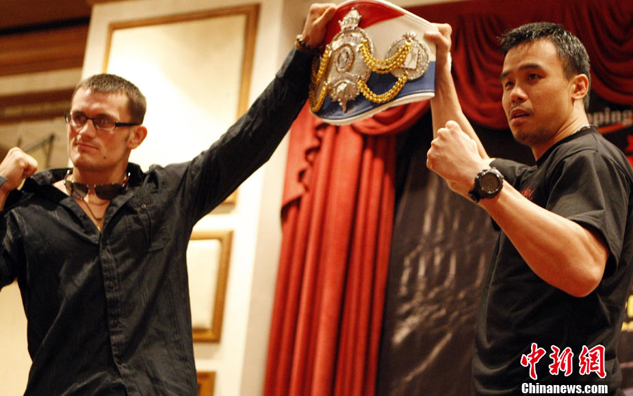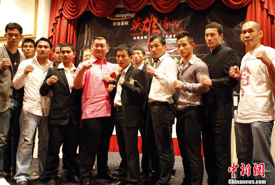 10月7日,“英雄傳說-決戰(zhàn)云頂”世界搏擊王者爭霸賽在馬來西亞吉隆坡舉行賽前發(fā)布會,是次賽事是目前在馬來西亞規(guī)模最大,規(guī)格最高的職業(yè)搏擊比賽,比賽除了五位泰拳選手和五位中國選手參加之外,還有來自日本、美國以及馬來西亞共16位拳手參賽。賽事由來自美國、日本、菲律賓以及中國的國際組織WBC、WCK、K-1的國際職業(yè)裁判擔任。10月9日該賽將通過衛(wèi)星全球直播,中國亦將有多家電視臺實況錄/轉(zhuǎn)播。圖為各國拳手亮相“英雄傳說-決戰(zhàn)云頂”世界搏擊王者爭霸賽賽前發(fā)布會。 中新社記者 錢興強 攝