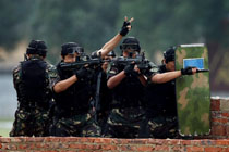 10月8日,中國、泰國兩軍特種部隊“突擊—2010”反恐聯(lián)合訓(xùn)練在廣西桂林拉開帷幕,這是兩國之間舉行的第三次陸軍聯(lián)合訓(xùn)練。分析人士指出,這次聯(lián)訓(xùn)將進(jìn)一步鞏固兩軍關(guān)系,提高聯(lián)合反恐作戰(zhàn)能力,利于維護(hù)地區(qū)和平穩(wěn)定。此次聯(lián)訓(xùn)為期15天,這是中泰兩國陸軍首次就城市反恐課題開展聯(lián)訓(xùn)。圖為兩軍官兵互相參觀武器裝備!≈行律缬浾 杜洋 攝