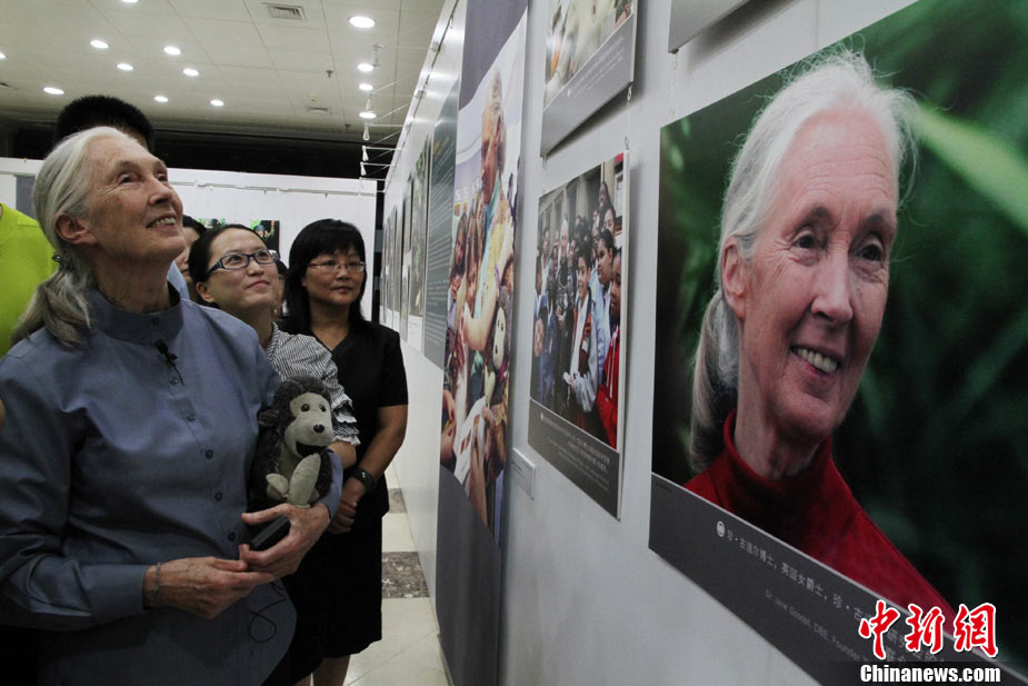 9月15日,當(dāng)今享譽(yù)國際的靈長類行為學(xué)家、自然資源保護(hù)主義者和聯(lián)合國和平信使珍•古道爾博士在北京開始了她的2010中國之旅。2010年對(duì)于珍•古道爾博士和她所創(chuàng)立的珍•古道爾研究會(huì)(JGI)來說是具有里程碑意義的一年。1960年,她第一次將足跡印在了今天坦桑尼亞岡比國家公園內(nèi)的坦噶尼喀湖湖畔,開始了對(duì)野生黑猩猩行為的研究。50年來,珍•古道爾博士一直致力于黑猩猩的研究和保護(hù),被譽(yù)為“黑猩猩母親”。2010年的中國之旅,古道爾博士與中國朋友們分享她在岡比50年的經(jīng)歷和收獲,并倡導(dǎo)青少年以積極的行動(dòng)為人類和動(dòng)物生存的環(huán)境帶來改變。圖為9月16日,珍•古道爾博士在首都圖書館興致勃勃地觀看記載她研究歷程的珍貴圖片。智遠(yuǎn) 文/攝