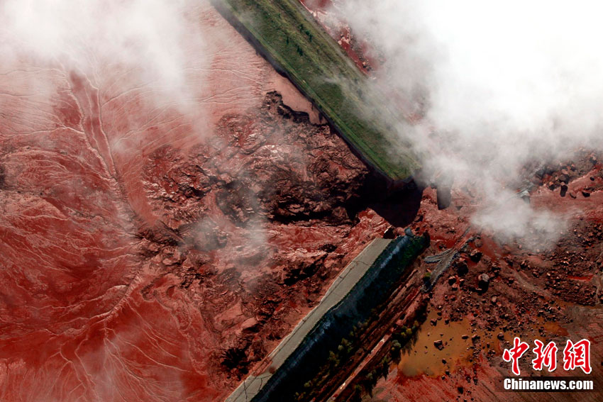 這張10月7日航拍的照片顯示,在匈牙利維斯普雷姆州奧伊考,鋁廠廢水池的堤壩毀壞,由此引發(fā)紅色有毒廢水泄漏。該鋁廠4日發(fā)生有毒廢水泄漏事故,目前已造成4人死亡,廢水7日上午流入多瑙河支流莫雄多瑙河。