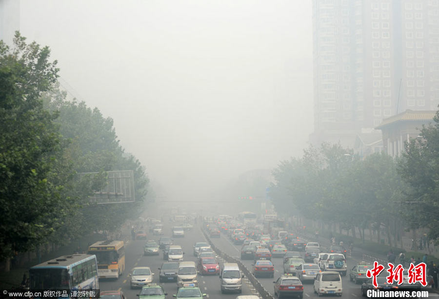 10月9日,中央氣象臺(tái)發(fā)布大霧藍(lán)色預(yù)警,大霧范圍明顯擴(kuò)大,華北、江漢等地大霧加強(qiáng),部分地區(qū)能見度不足500米,給各地航運(yùn)、公路、鐵路交通造成一定影響。圖為10月9日,霧霾籠罩的南京市閱江樓景區(qū)白茫茫一片。董金林 攝 圖片來源:CFP視覺中國