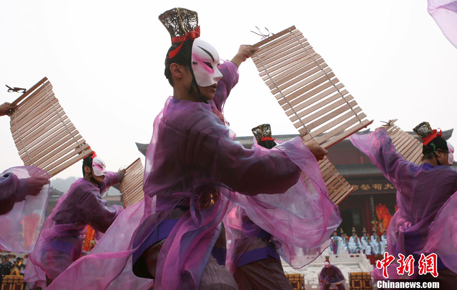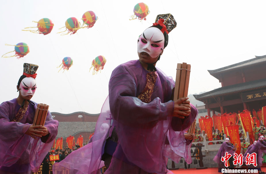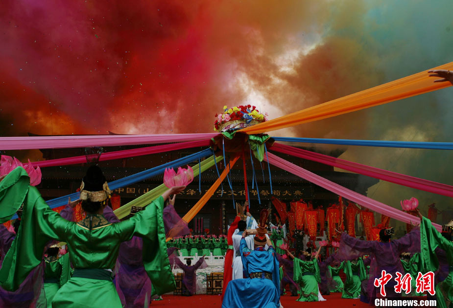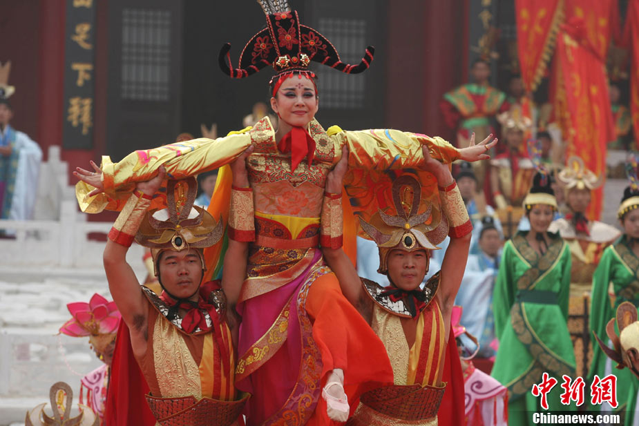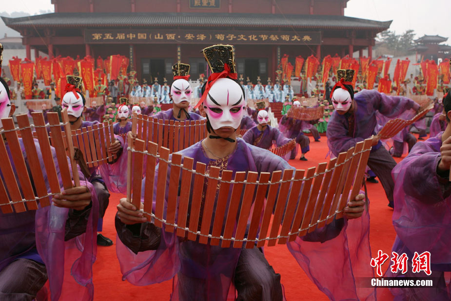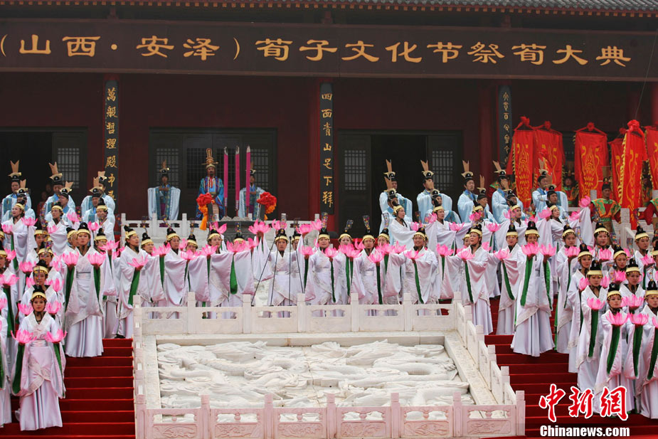 10月10日,演員在祭荀大典上表演戰(zhàn)國風格的舞蹈。當日,第五屆中國荀子文化節(jié)開幕式暨祭荀大典在荀子故里山西省安澤縣舉行。包括10國駐華大使在內的數(shù)千名海內外人士參加了此次大典。中新社發(fā) 蘇丹 攝
