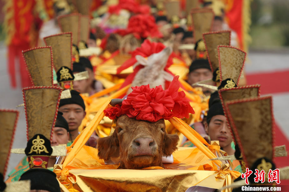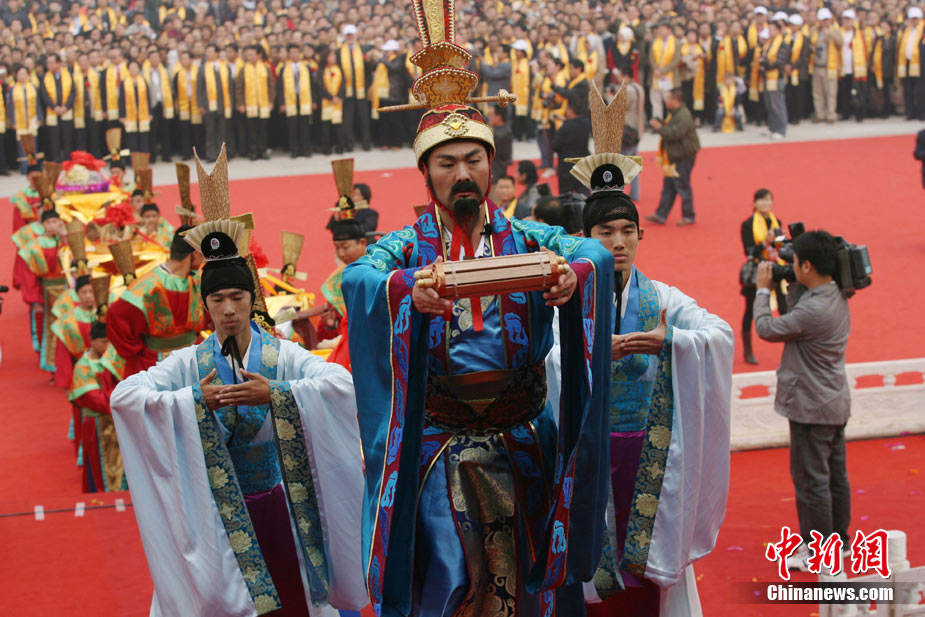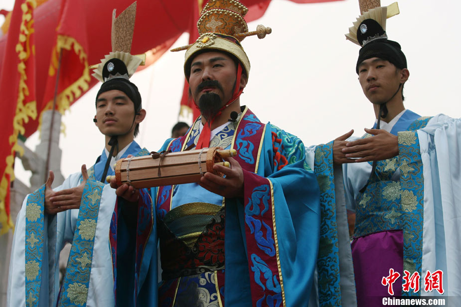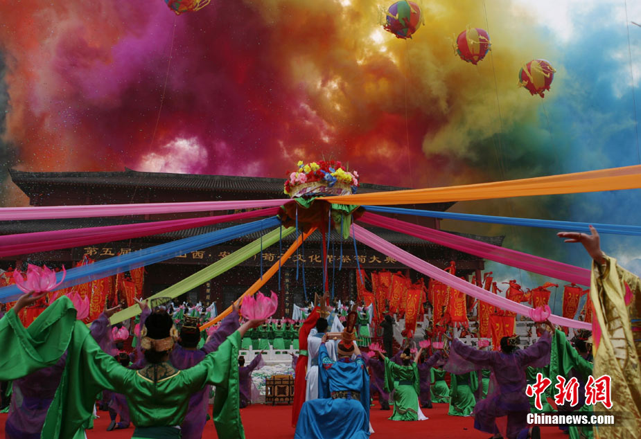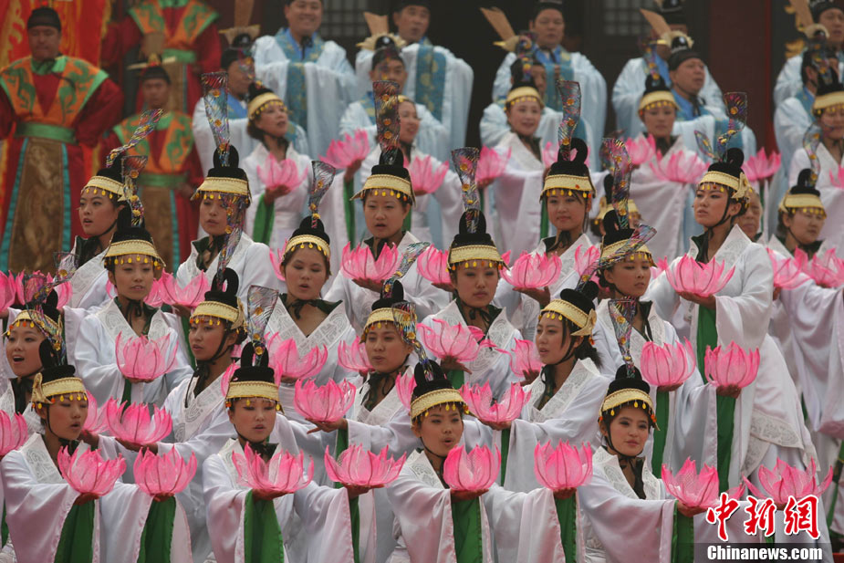 10月10日,演員在祭荀大典上表演戰(zhàn)國風格的舞蹈。當日,第五屆中國荀子文化節(jié)開幕式暨祭荀大典在荀子故里山西省安澤縣舉行。包括10國駐華大使在內的數(shù)千名海內外人士參加了此次大典。中新社發(fā) 蘇丹 攝