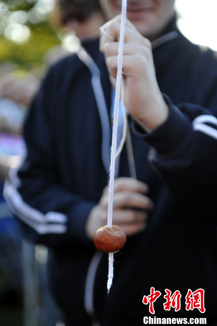 10月10日,英國北安普敦郡昂德爾,傳統(tǒng)的的2010世界板栗競標(biāo)賽在此舉行。參賽選手要用自己手中的板栗設(shè)法擊碎對方的板栗,比賽結(jié)果按照擊碎對方板栗數(shù)量計算。這項比賽開始于1965年。
