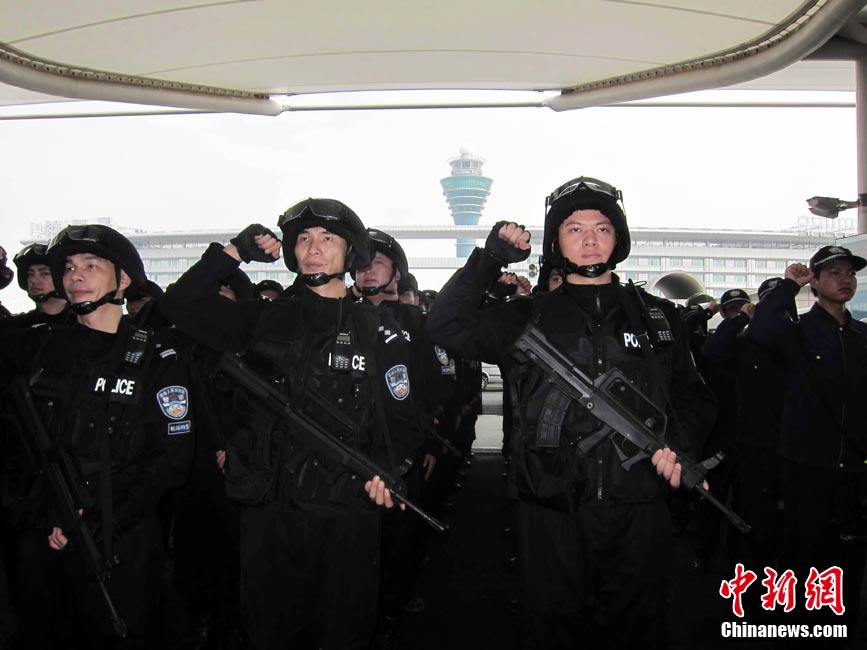 10月12日上午,廣州白云國際機場公安局舉行亞運安保誓師大會,數(shù)百名警員出席大會,在此間保證圓滿完成亞運安保任務(wù)。中新社記者 柯小軍 攝