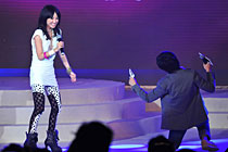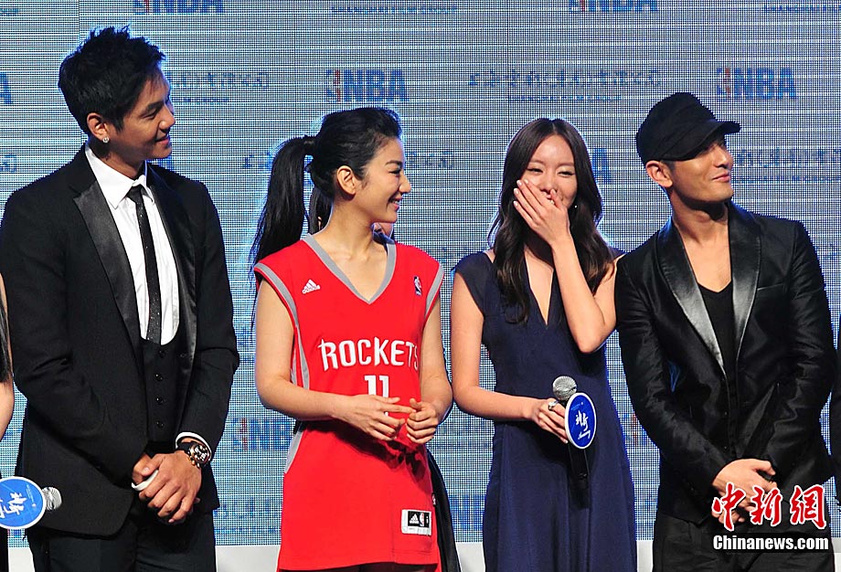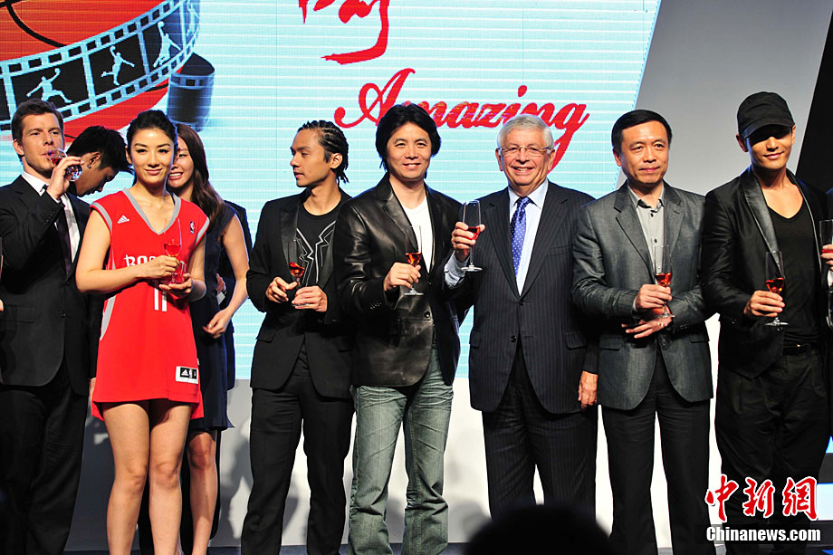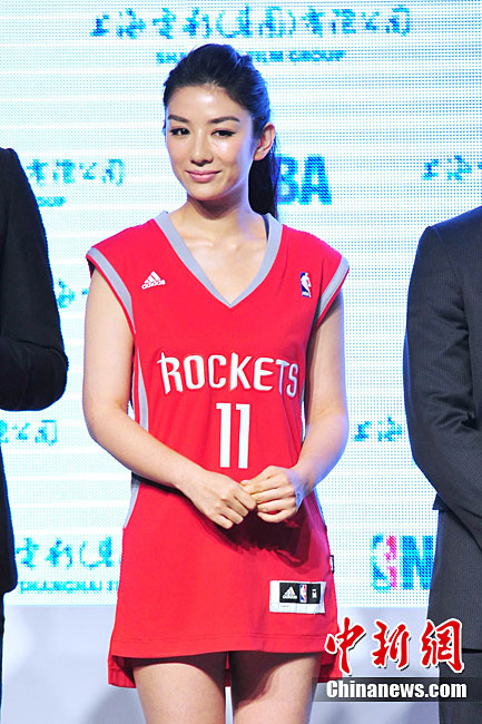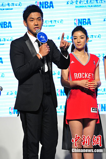 10月12日,上海電影集團(tuán)聯(lián)手美國職業(yè)籃球協(xié)會(huì)(NBA)在京召開發(fā)布會(huì),共同揭曉首部本土制作的NBA題材電影《神奇Amazing》的全明星陣容,六屆NBA冠軍得主科特·皮蓬、中國著名籃球明星易建聯(lián)、NBA全明星球員效力于奧蘭多魔術(shù)隊(duì)的德懷特·霍華德、丹佛掘金隊(duì)的卡梅羅·安東尼、現(xiàn)中國男子籃球隊(duì)球員王治郅等多名籃球明星,以及來自兩岸三地的人氣明星黃曉明、馮德倫、陳建州(黑人)、黃奕,以及韓國女星金雅中,美國男星埃里克·馬布斯將聯(lián)手出演影片。圖為在片中飾演拉拉隊(duì)長的黃奕身著鮮紅色火箭隊(duì)姚明11號(hào)球衣驚艷亮相。中新社記者 李學(xué)仕 攝