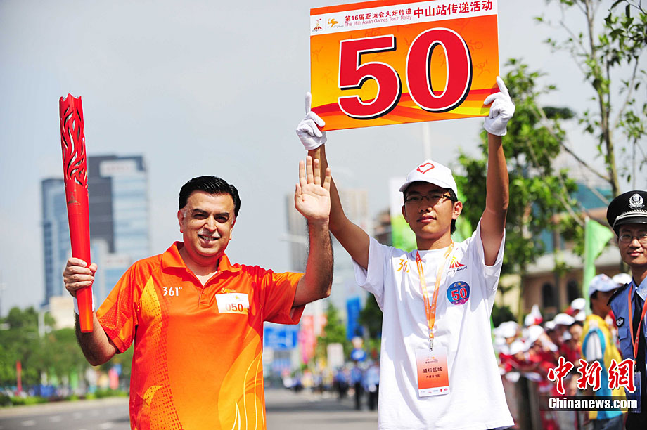 10月13日,備受矚目的第16屆廣州亞運(yùn)會(huì)火炬?zhèn)鬟f在廣東省中山市舉行;鹁?zhèn)鬟f從孫文紀(jì)念公園出發(fā),火炬手有科學(xué)家、音樂家、漫畫家、美術(shù)家、企業(yè)家等80名火炬手接力,全長(zhǎng)11.2公里。中新社記者 陳文 攝