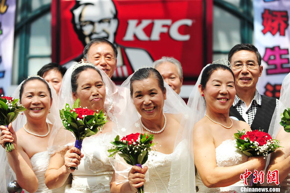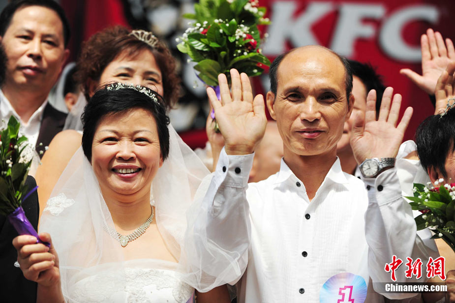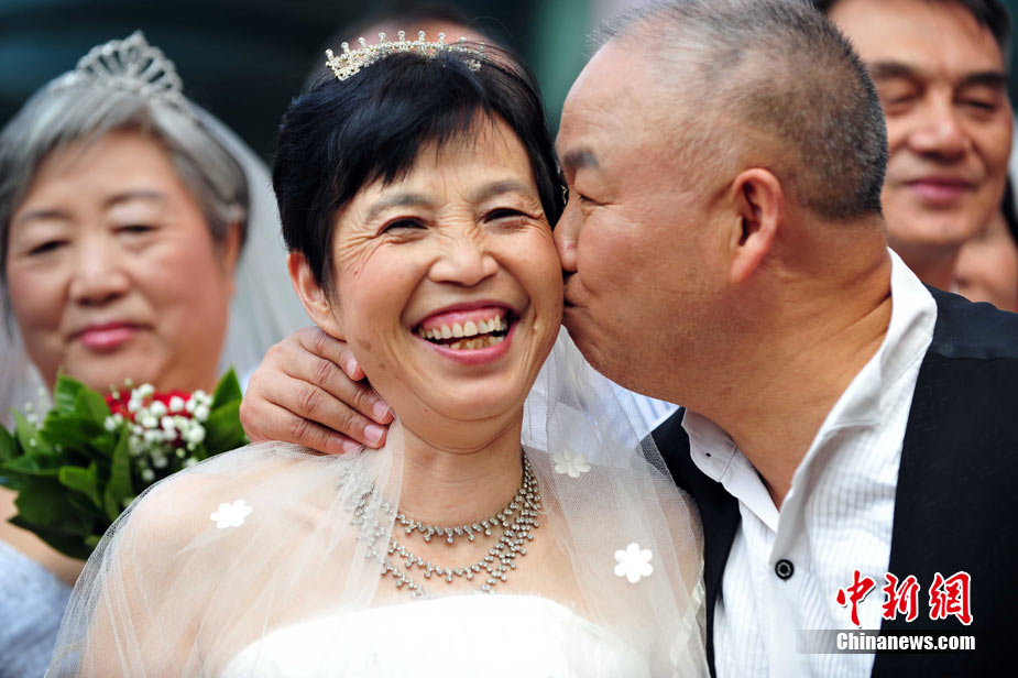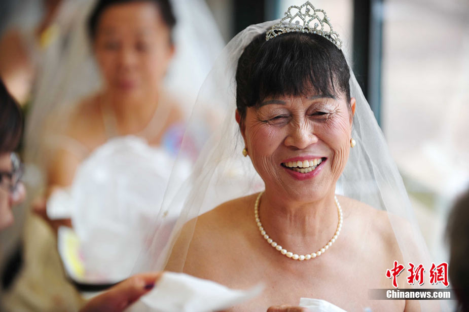 10月14日,由深圳某公司組織的老人披婚紗圓夢(mèng)公益活動(dòng)在東部華僑城舉行,30對(duì)結(jié)婚30年以上的老人在此歡聚一堂喜度重陽(yáng)。中新社記者 陳文 攝