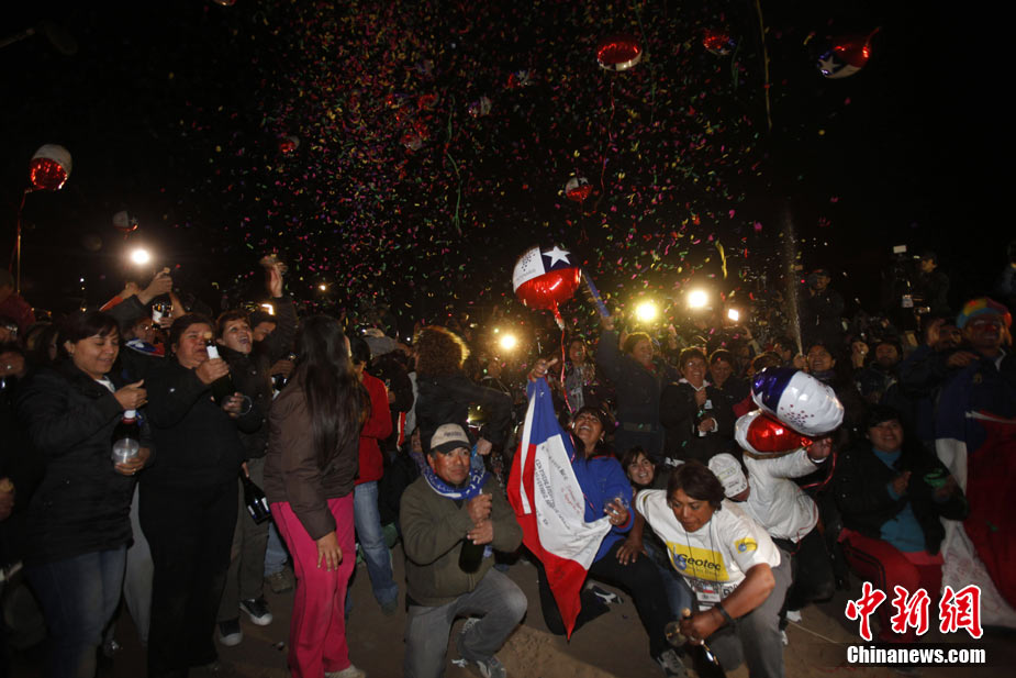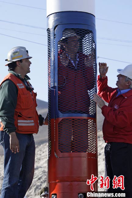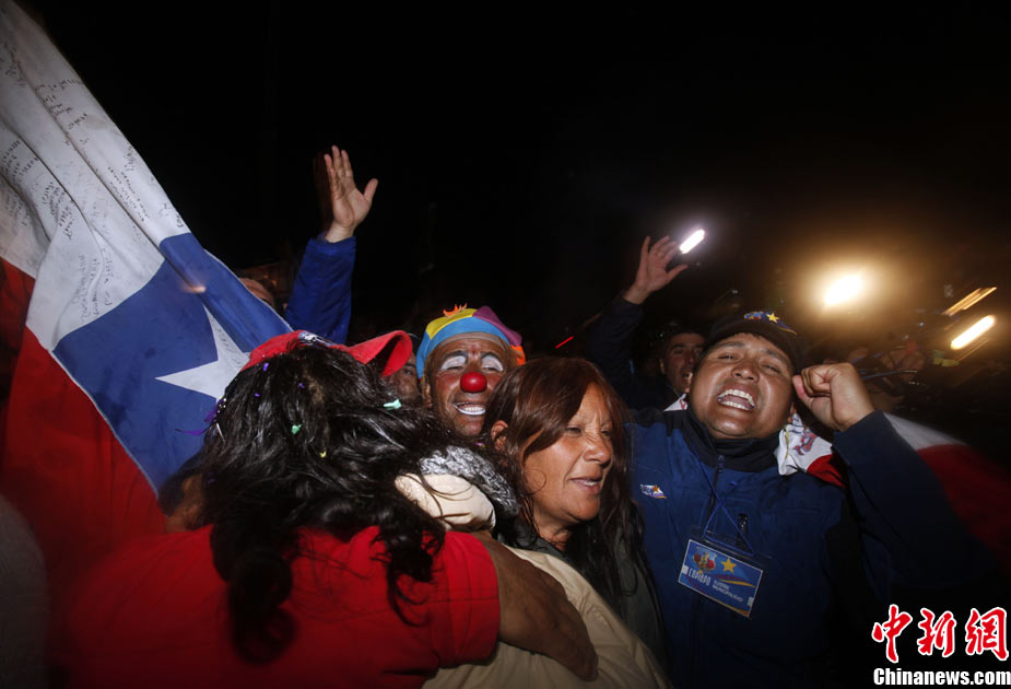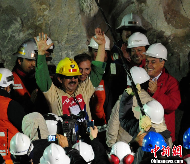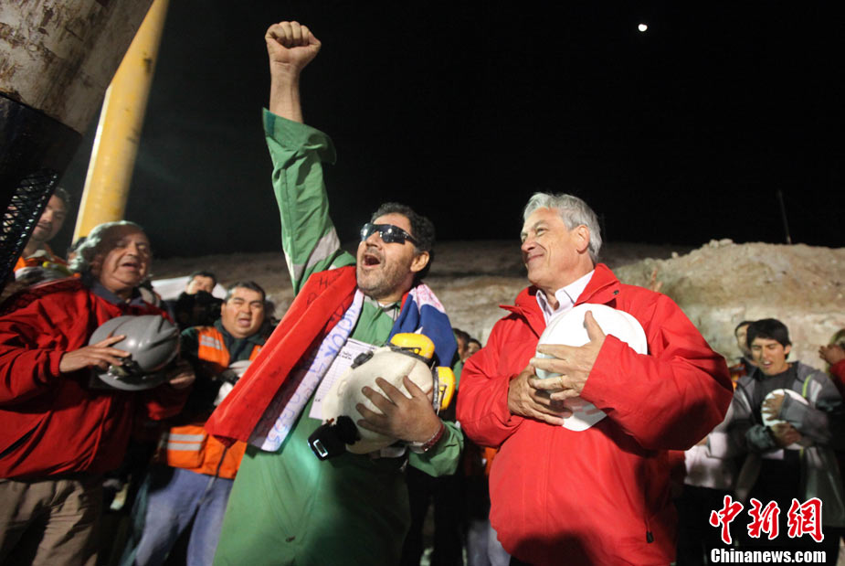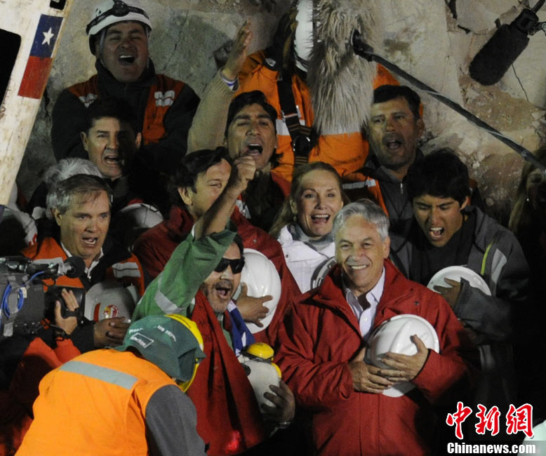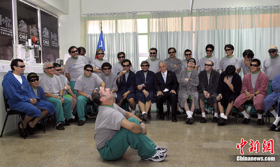10月14日,智利總統(tǒng)皮涅拉會見了所有33名圣何塞銅礦獲救的被困礦工。33位在礦井下被困兩個多月的礦工周三被全部救出。據(jù)醫(yī)生說,這些獲救礦工的大多數(shù)健康狀況良好。