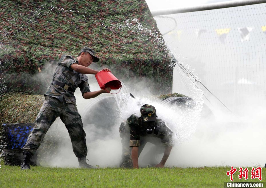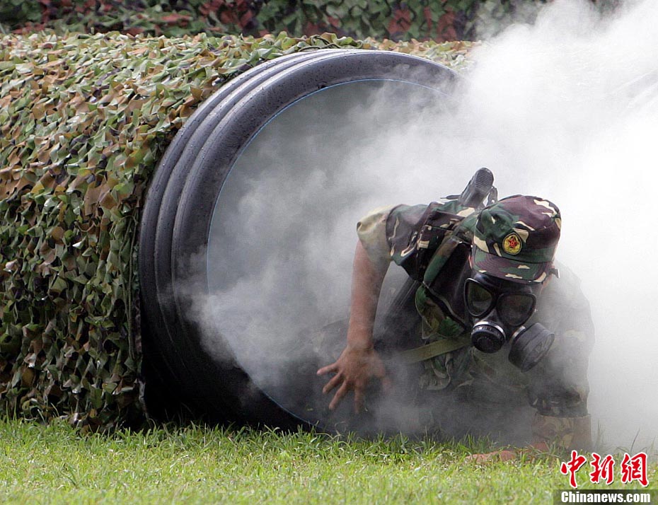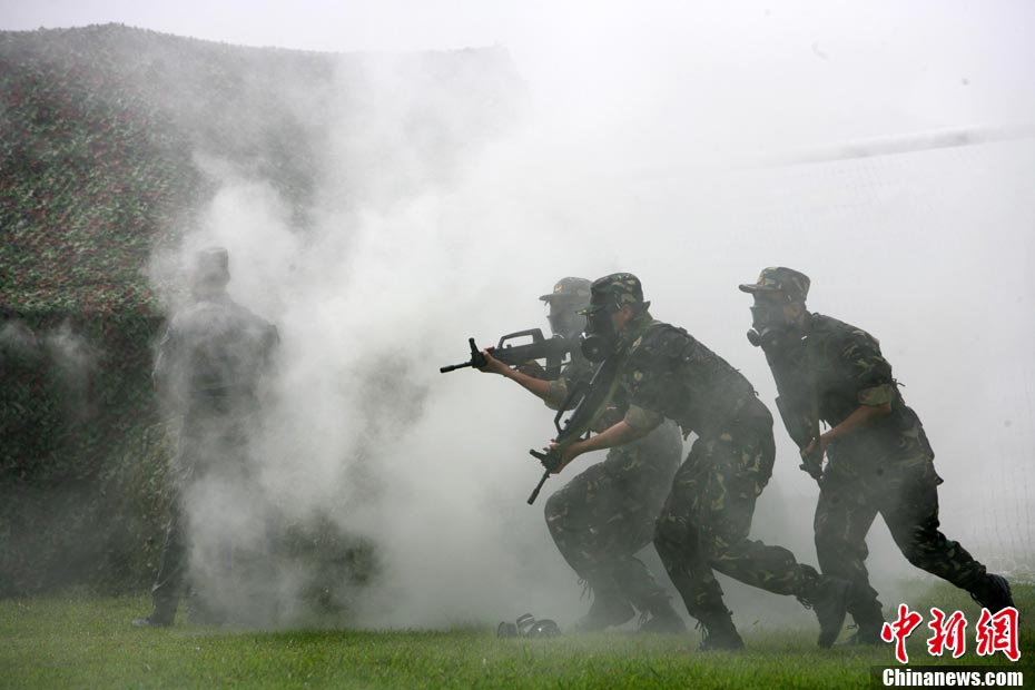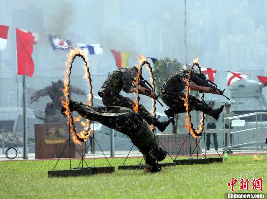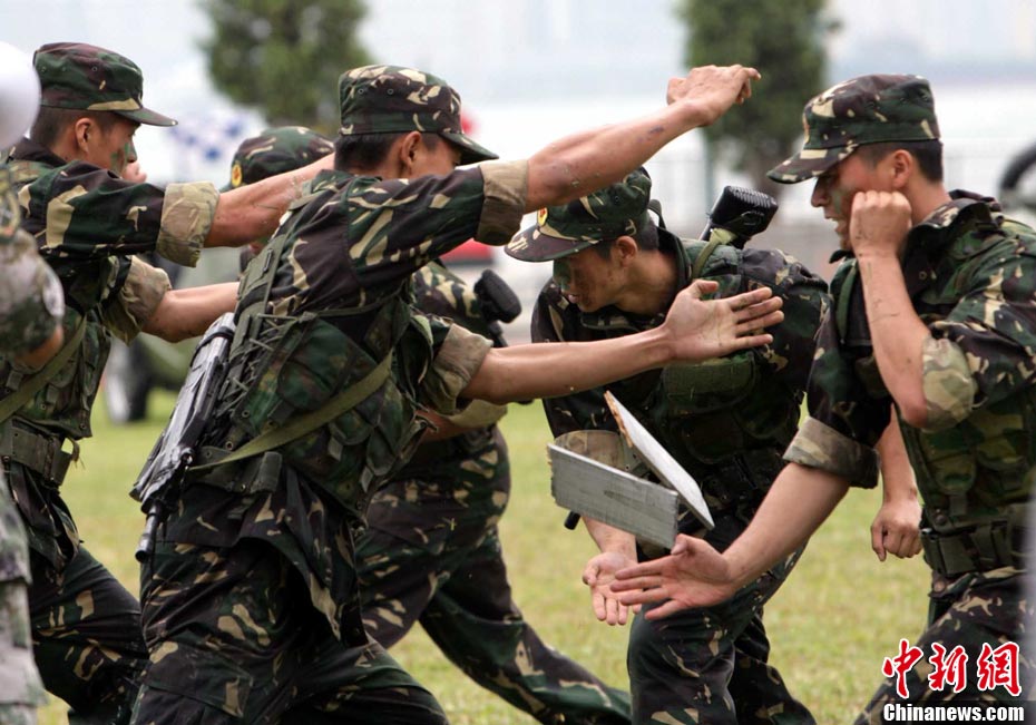 10月16日,中國人民解放軍駐港部隊特種兵在香港昂船洲海軍基地進(jìn)行“獵人戰(zhàn)斗”演練,展示過硬的搏擊功夫。當(dāng)天,駐軍與香港各大院校大學(xué)生聯(lián)誼活動,以各種形式相互交流,增進(jìn)香港學(xué)生對國家的了解。 中新社發(fā) 洪少葵 攝