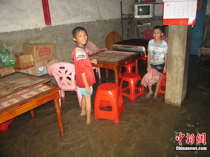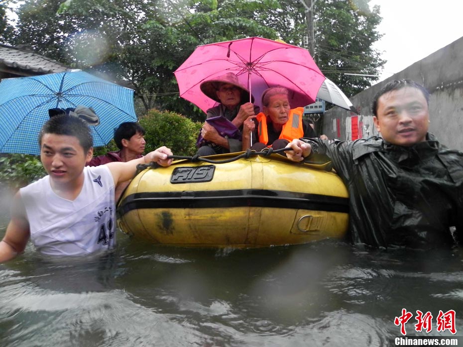 10月16日9時(shí),受持續(xù)強(qiáng)降雨影響,瓊海市牛路嶺水庫最高水位達(dá)105.16米,超過防洪限制水位105米,牛路嶺水庫水電站打開7個(gè)閘門,以每秒3000立方米流量泄洪到萬泉河。當(dāng)日上午,瓊海市政府緊急將萬泉河沿岸7鄉(xiāng)鎮(zhèn)群眾緊急轉(zhuǎn)移。中新社發(fā) 付美斌 攝