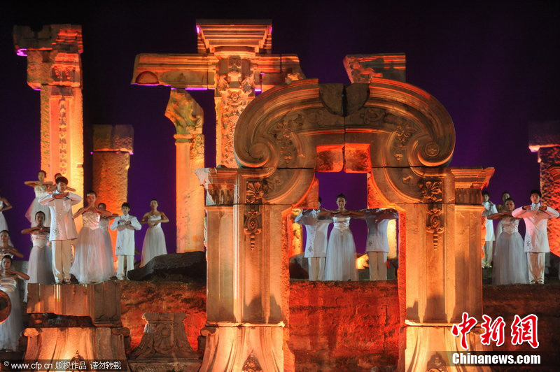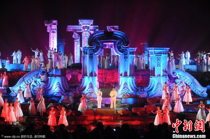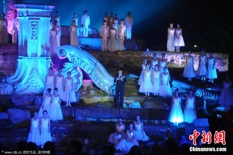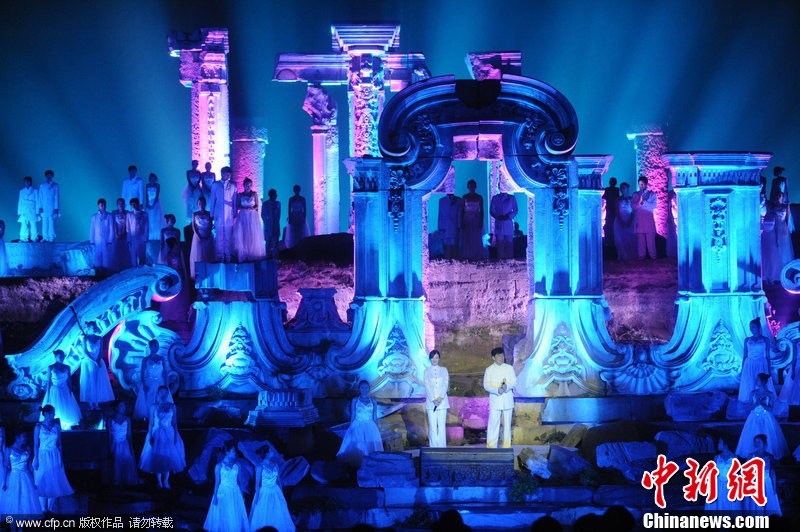 2010年10月18日晚,北京,圓明園罹難150周年紀(jì)念儀式在大水法前舉行。億佰 攝 圖片來源:CFP視覺中國(guó)