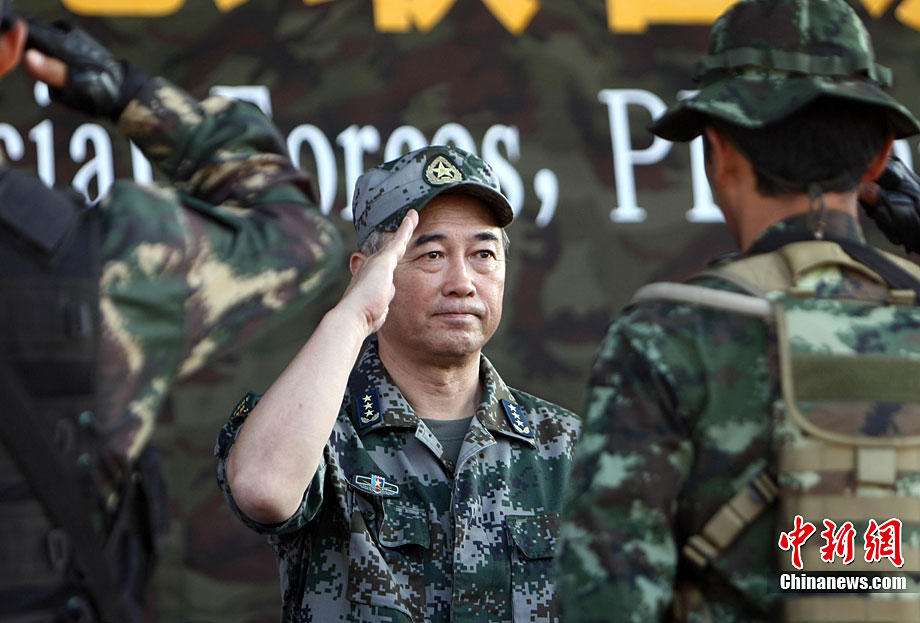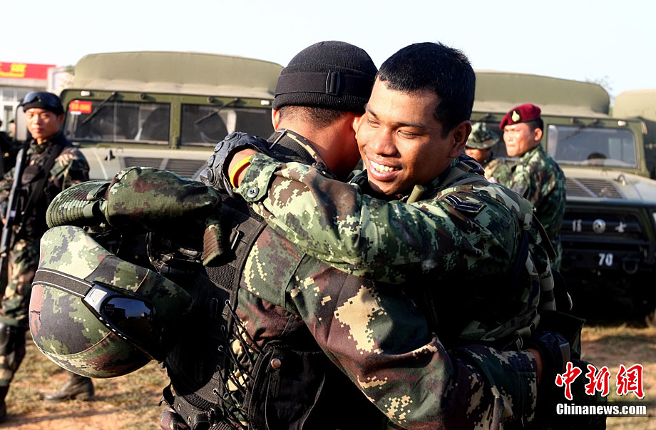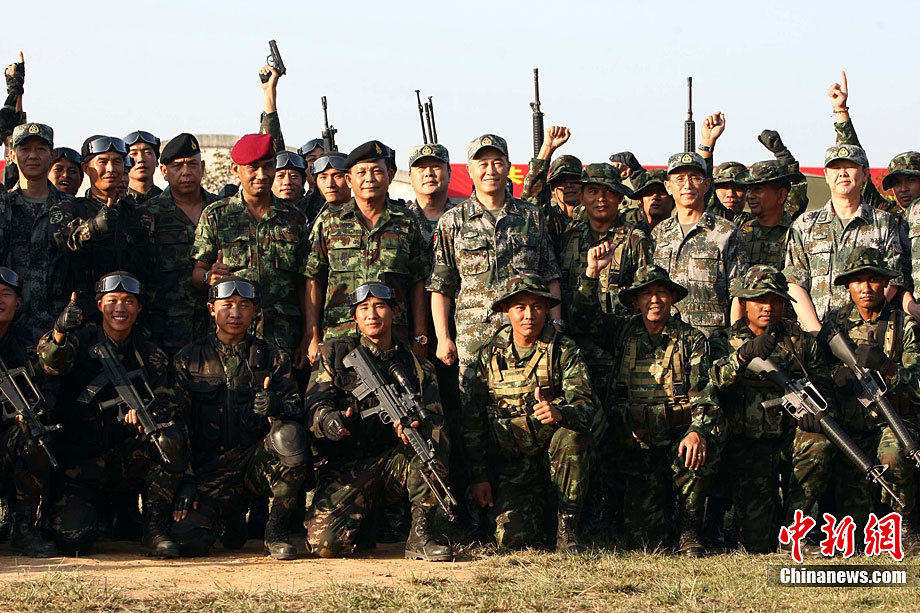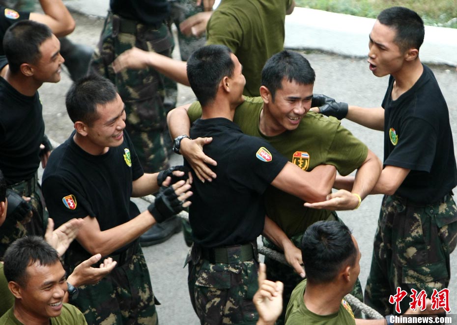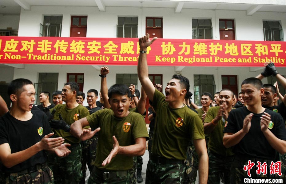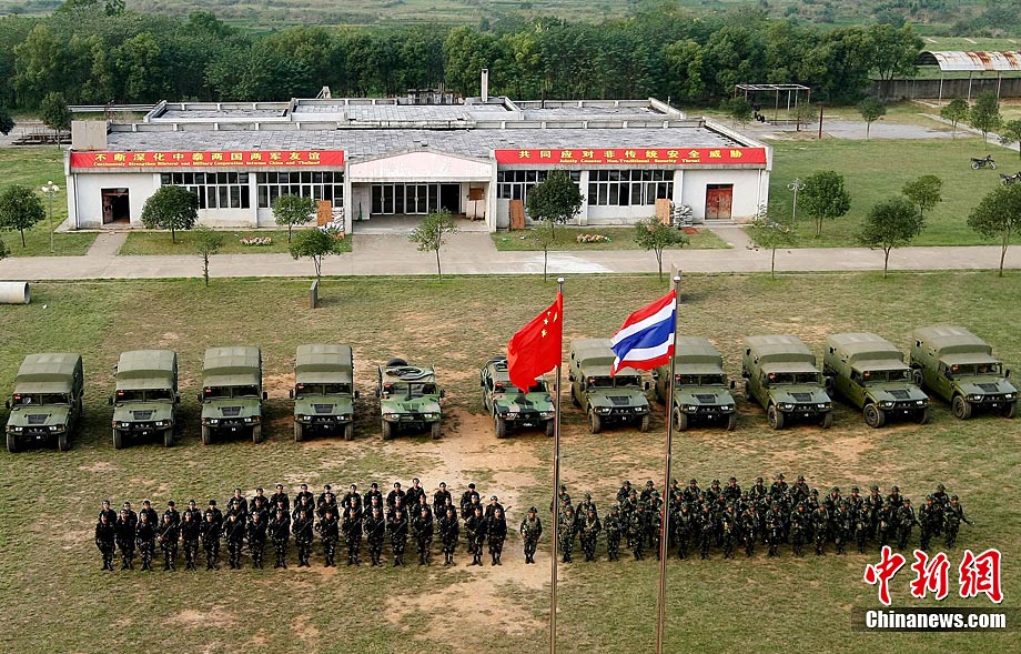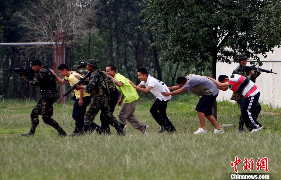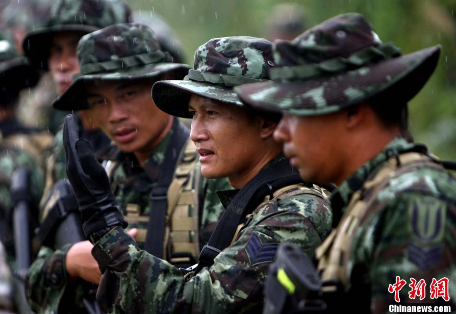 10月19日,“突擊-2010”中泰反恐聯(lián)訓(xùn)在廣州軍區(qū)“紅嶺”合同戰(zhàn)術(shù)訓(xùn)練基地舉行“獵鼬”行動(dòng)實(shí)兵綜合演練,圍繞“城市聯(lián)合反恐行動(dòng)”這一課題,演練了快速封鎖、偵搜排查、隔離疏散、立體突擊4個(gè)行動(dòng)。演練模擬一名為“臭鼬”的國(guó)際恐怖組織在泰國(guó)制造暴力恐怖活動(dòng)后,秘密潛入中國(guó)G市紅嶺小區(qū),企圖在XX地區(qū)領(lǐng)導(dǎo)人峰會(huì)期間繼續(xù)制造恐怖事件,干擾峰會(huì)順利進(jìn)行。中泰兩國(guó)政府依據(jù)聯(lián)合反恐協(xié)議,決定成立聯(lián)合指揮機(jī)構(gòu),抽調(diào)特種部隊(duì)精銳力量組成“獵鼬突擊隊(duì)”,共同進(jìn)行反恐作戰(zhàn)任務(wù)。 中新社記者 杜洋 攝