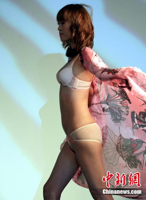 10月21日,中國(guó)某女性內(nèi)衣品牌在上海舉行2011春夏新品發(fā)布會(huì),率先推出“自在·零負(fù)擔(dān)”內(nèi)衣,讓女性在即將到來(lái)的兔年中體驗(yàn)“身體不受束縛,心靈自由放逸”的逍遙境界。 中新社記者 潘索菲 攝