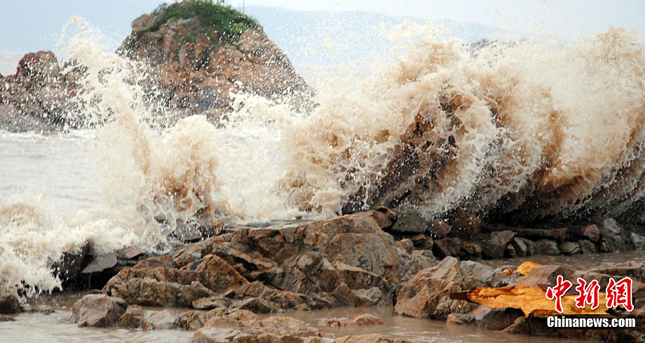 10月21日上午,浙江溫嶺市城南鎮(zhèn)后灣塘堤壩上,正在退去的潮水夾雜著海風(fēng)拍打岸邊。受今年第13號超強(qiáng)臺風(fēng)“鲇魚”的影響,當(dāng)日,浙江溫嶺市沿海海面出現(xiàn)9到11級大風(fēng)。圖片來源:cnsphoto 金云國 攝