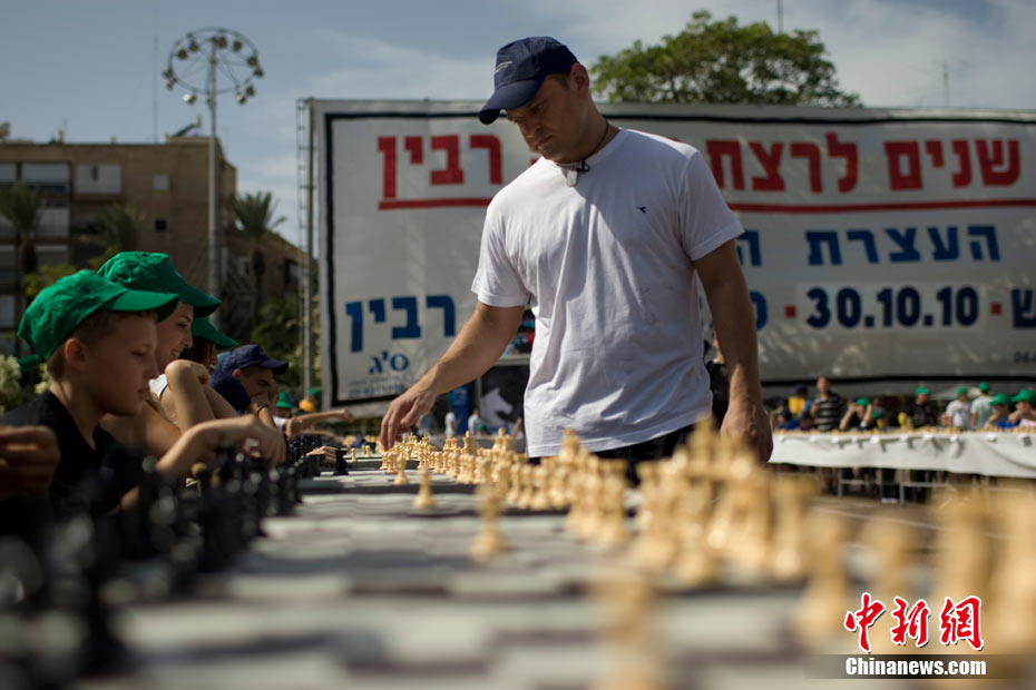 2010年10月21日,以色列特級大師格爾松在特拉維夫的拉賓廣場舉行國際象棋車輪戰(zhàn),與525名棋手對弈,沖擊去年夏天由伊朗大師馬約布創(chuàng)造的1對500名棋手的吉尼斯世界紀(jì)錄。