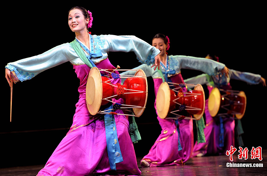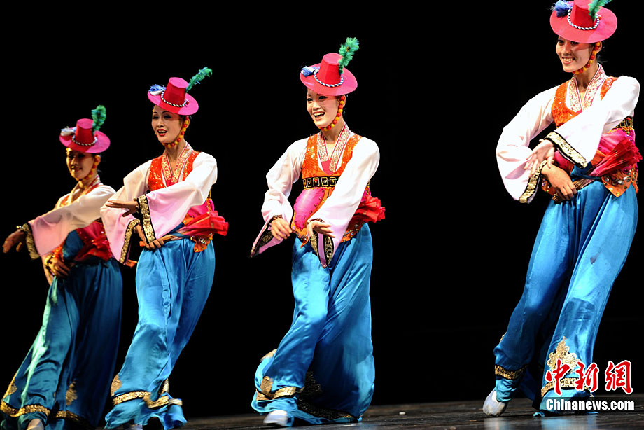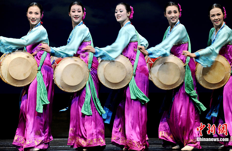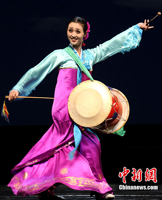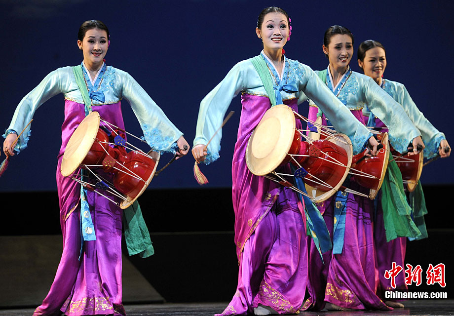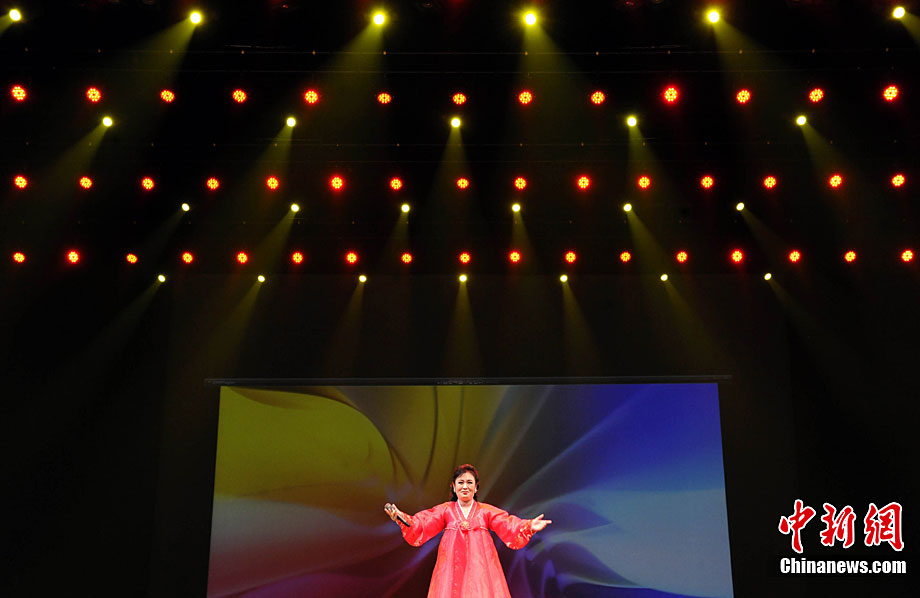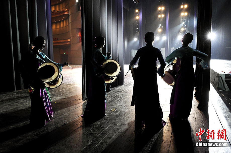 10月22日晚,朝鮮平壤藝術(shù)團在國家大劇院進行彩排。10月23至24日,朝鮮平壤藝術(shù)團將在北京國家大劇院歌劇院上演歌舞晚會《怒放的金達萊》。此次來訪的朝鮮平壤藝術(shù)團,是朝鮮政府專門為參加上海世博會朝鮮館日組建的表演團體,該團成員來自朝鮮最重要的三大藝術(shù)團體:萬壽臺藝術(shù)團、血海藝術(shù)團和朝鮮民族國立藝術(shù)團,參演人員薈萃了朝鮮最優(yōu)秀的藝術(shù)家。演員們將身著獨具特色的民族服飾,表演《長鼓舞》、《拾貝姑娘》、《鈴鐺舞》、《三人舞》等傳統(tǒng)舞蹈。中新社記者 劉震 攝