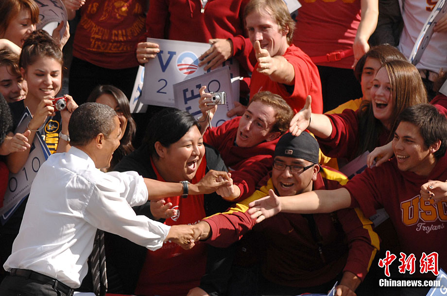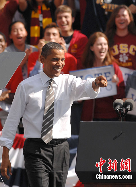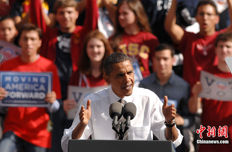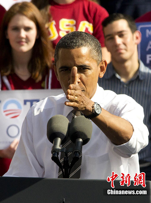 當(dāng)?shù)貢r(shí)間10月22日,距離美國中期選舉投票日還有11天,正在美國西部為民主黨助選的奧巴馬總統(tǒng)又馬不停蹄地來到洛杉磯,面對上萬名支持者,他呼吁大家站出來為美國和加州把握正確方向。中新社發(fā) 張煒 攝