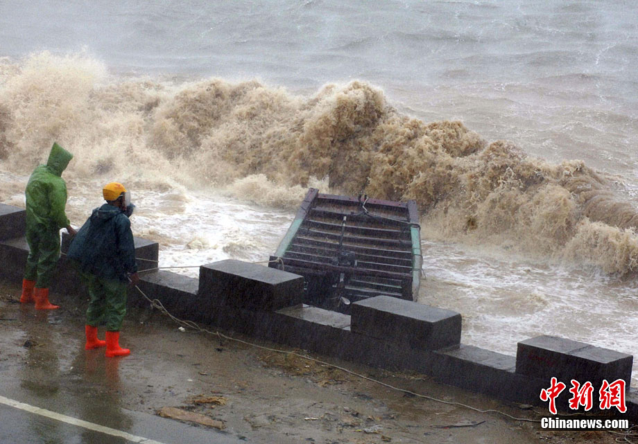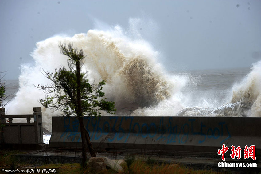 10月23日12時55分,今年第13號臺風“鲇魚”在福建省漳浦縣六鰲鎮(zhèn)登陸,登陸時近中心最大風力13級(風速38米/秒),未來將向北偏西方向移動,強度逐漸減弱。圖片來源:CFP視覺中國 林良標 攝