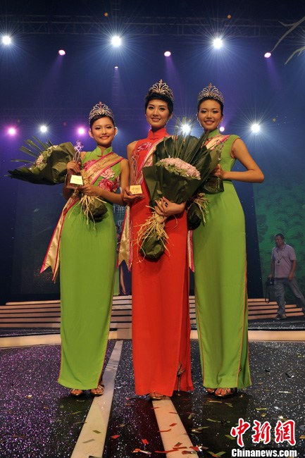 10月23日晚,“2010中華小姐環(huán)球大賽”總決賽在香港九龍灣國際展貿(mào)中心完美上演。入圍總決賽的12名佳麗經(jīng)過激烈角逐,最終1號選手田川摘得桂冠,5號選手葉帆和8號選手嚴(yán)青分別榮獲亞軍和季軍。中新網(wǎng)記者 金碩 攝