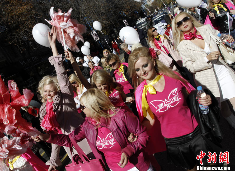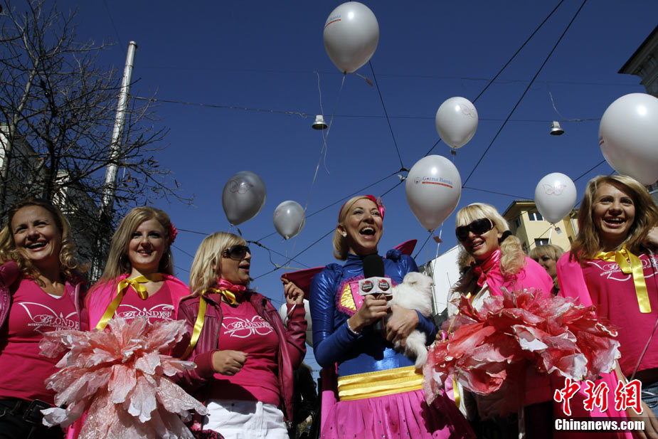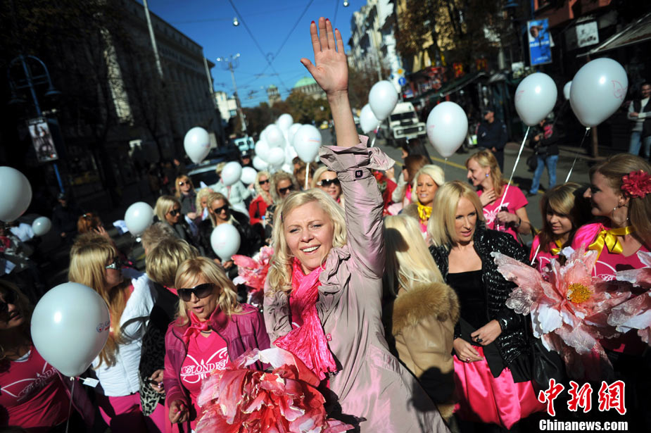 近日,在保加利亞首都索非亞舉行了金發(fā)女郎大游行,眾多美女在街頭大秀嫵媚身材。