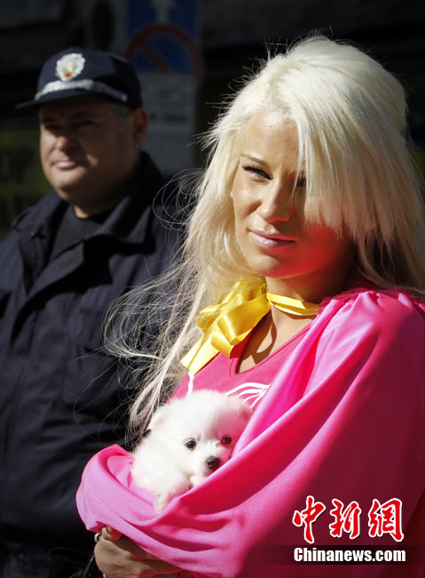 保加利亞金發(fā)女郎街頭集會(huì) 大秀高挑身材