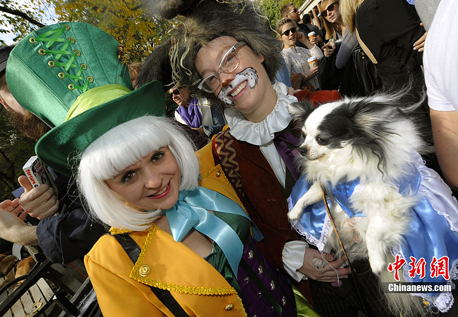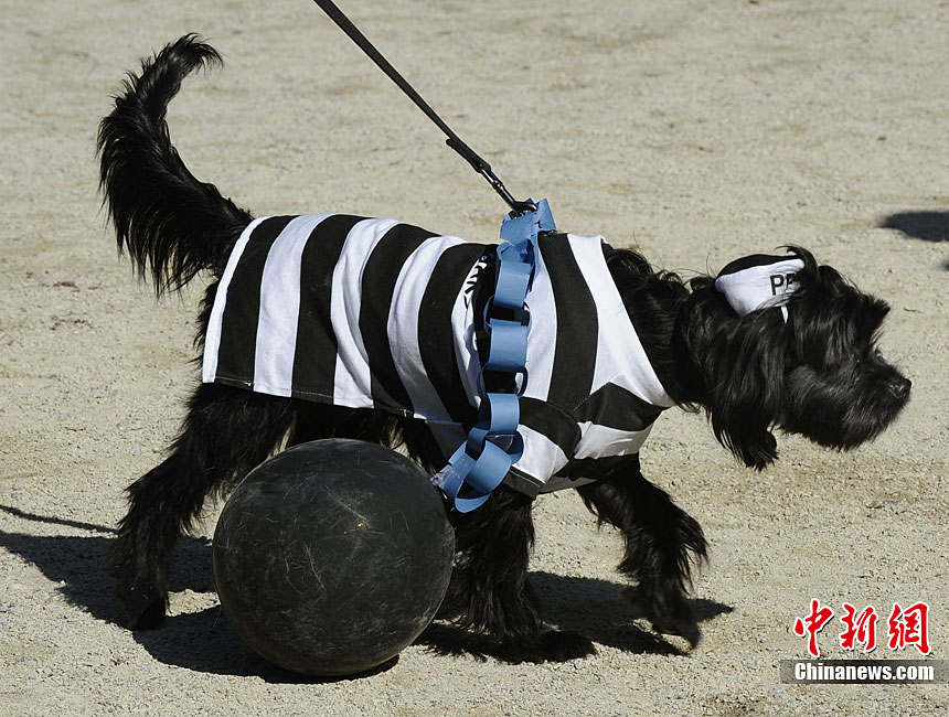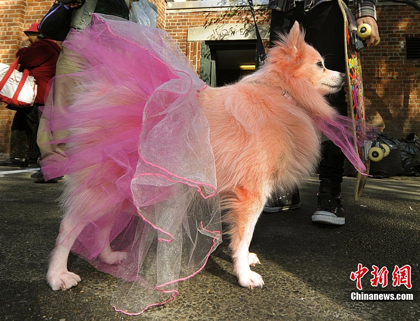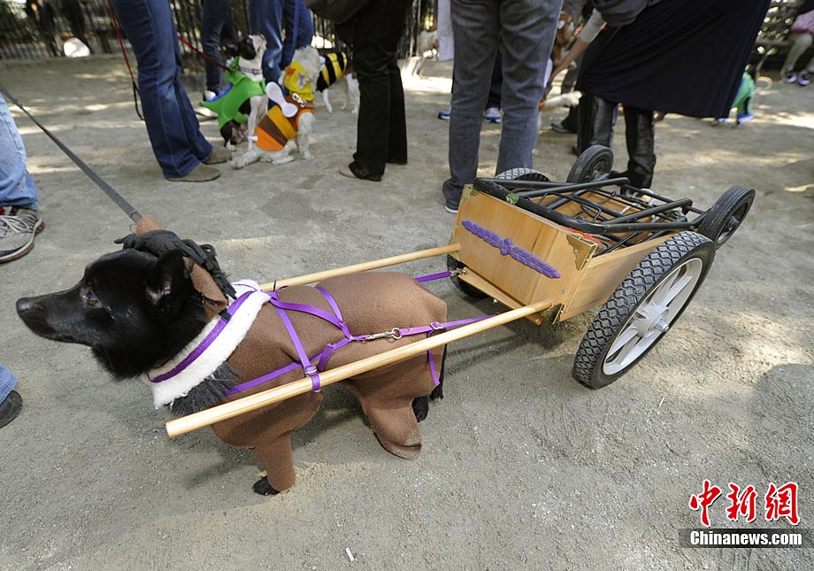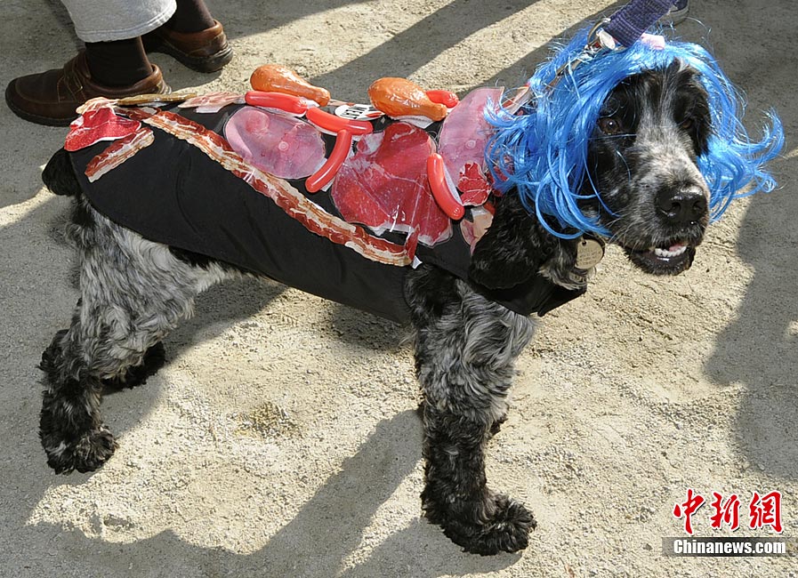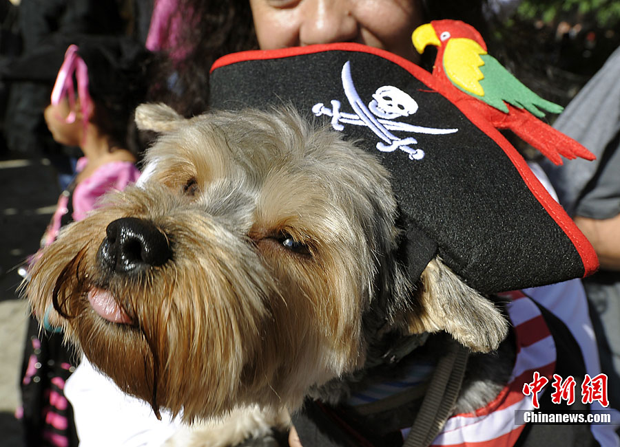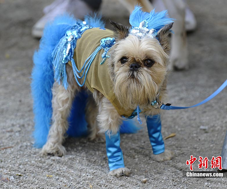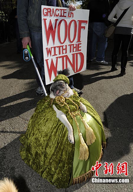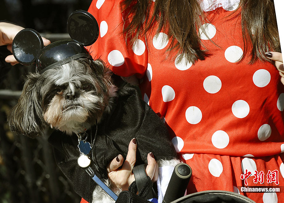 10月31日是西方傳統(tǒng)的萬圣節(jié)。當?shù)貢r間10月23日美國紐約湯普金斯廣場公園舉行了第20屆萬圣節(jié)小狗大游行活動!俺鱿被顒拥男」穫冄b扮的造型都很別致,讓人忍俊不禁。