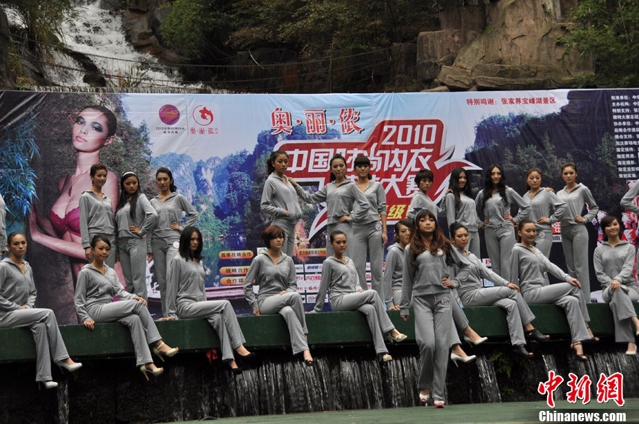 “2010中國(guó)時(shí)尚內(nèi)衣模特大賽”晉級(jí)賽10月28日下午在世界自然遺地產(chǎn)地——張家界武陵源寶峰湖風(fēng)景區(qū)開賽。來自北京、上海等地的72名內(nèi)衣佳麗一展身姿,爭(zhēng)奪前30名決賽資格。11月5日,“奧麗儂杯·2010中國(guó)時(shí)尚內(nèi)衣模特決賽暨頒獎(jiǎng)盛典”將在張家界魅力湘西國(guó)際文化廣場(chǎng)火熱上演。吳勇兵 唐純禮攝