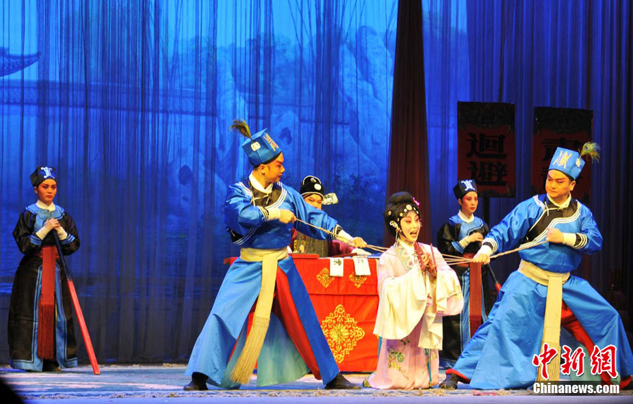10月28日晚,“蘭州戲劇節(jié)”的“金城之春”秦腔演出周落下帷幕。此次演出周由陜西省戲曲研究院與蘭州戲曲劇院的名家新秀為蘭州戲迷聯(lián)袂上演秦腔歷史劇《十五貫》、《斬竇娥》、《打鑾駕》等六臺(tái)本戲、經(jīng)典折子戲。楊艷敏 攝