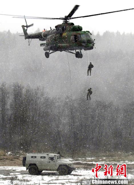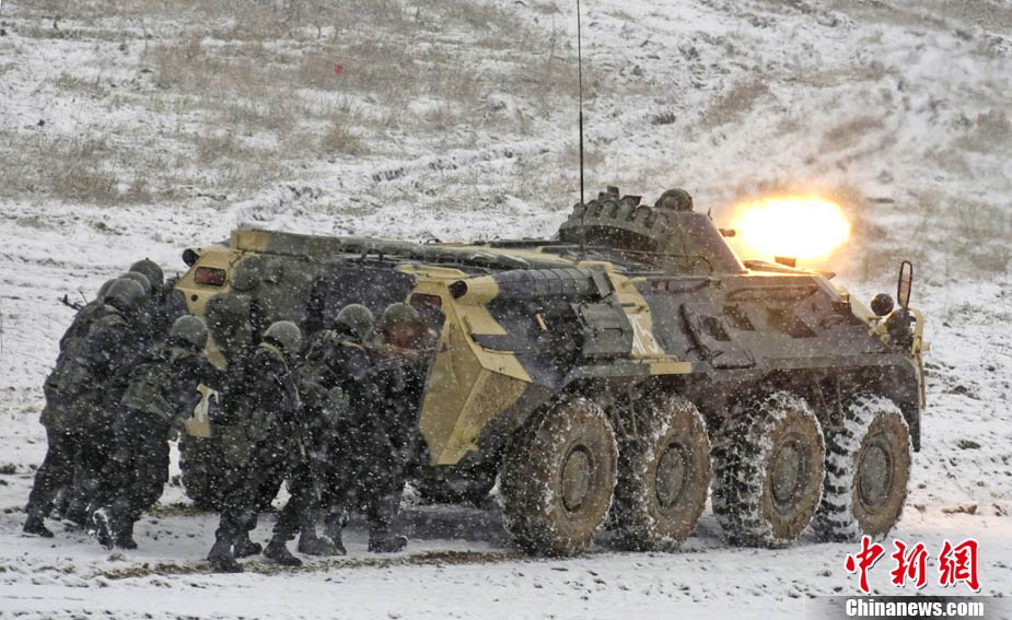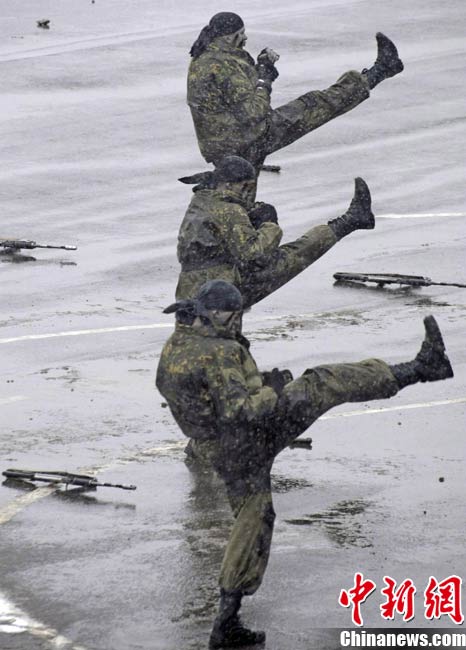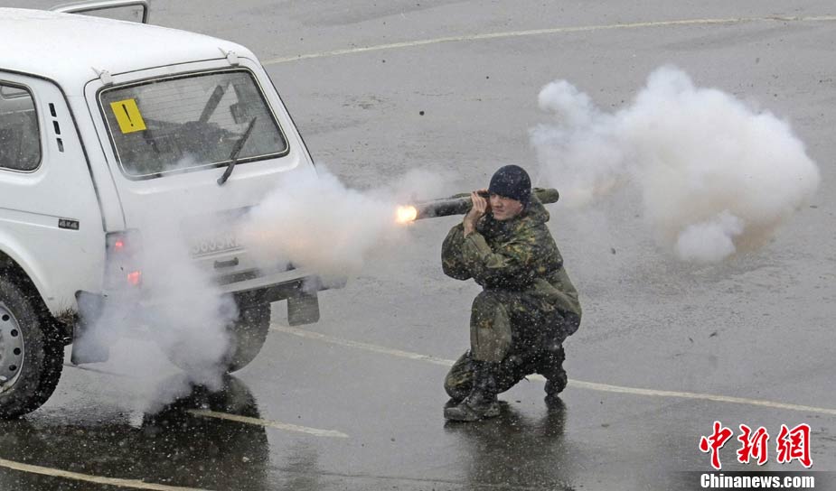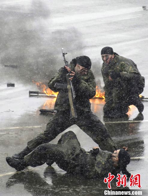 10月29日,俄羅斯莫斯科郊區(qū),俄羅斯特警在Interpolitex-2010國際警察與防務(wù)技術(shù)展上進(jìn)行示范戰(zhàn)術(shù)演練。