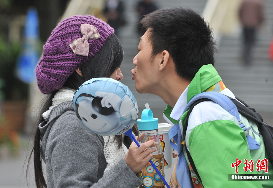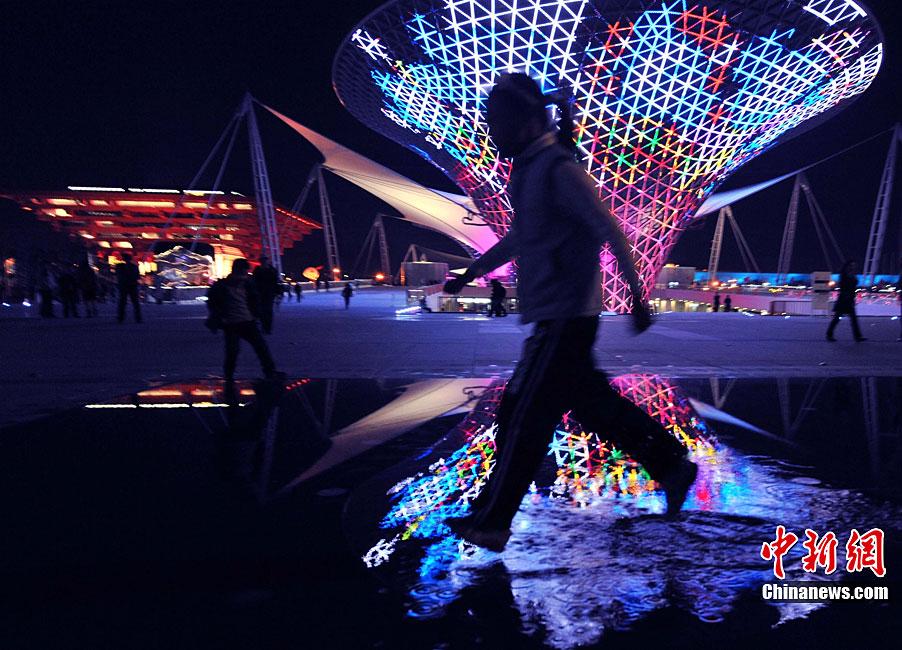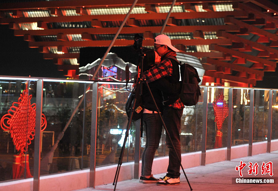 10月30日,上海世博會閉幕前夜,一對年青戀人深夜擁吻在世博園中國館前,沉浸于美好夜色里不忍離去。中新社記者 賈國榮 攝