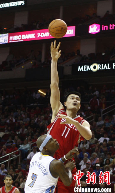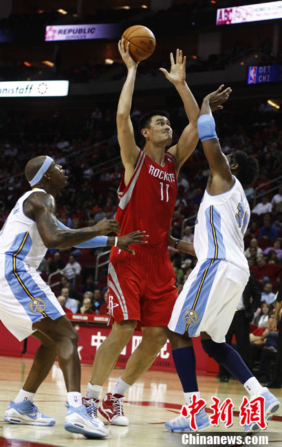 10月31日,火箭在主場揭幕戰(zhàn)中94-107不敵掘金,遭遇三連敗,創(chuàng)下11年來最差開局戰(zhàn)績。姚明缺陣一場后復(fù)出,10投6中拿下14分、6個(gè)籃板和2個(gè)蓋帽。