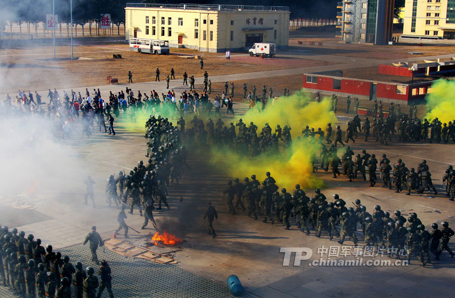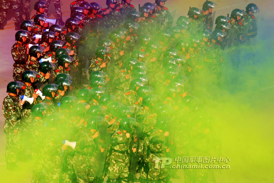 訓練場內(nèi),喊聲陣陣,面對總隊考評組給出的各種突發(fā)情況,各機動部隊官兵手持盾牌、警棍,排成各種陣型,疾進如風,徐推如林……據(jù)介紹,此次對抗競賽時間為兩天,近6000人參考,考核、觀摩課目16類30項內(nèi)容,按照首長機關、警官、士兵、分隊編組對抗依次競賽,是武警北京總隊歷年來參考人數(shù)最多,考核課目最全的一次整編制機動部隊考核競賽。