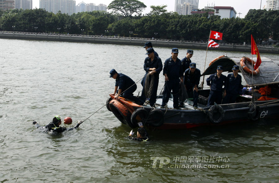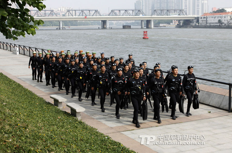 這支“蛙人”部隊(duì)是由海軍南海艦隊(duì)某支隊(duì)和防救船大隊(duì)的潛水部門分別派出共計(jì)80多位精兵強(qiáng)將組成的。作為我軍水上救援的重要力量,這支部隊(duì)多次出色完成了遠(yuǎn)洋救生、深海打撈、搶險(xiǎn)救災(zāi)和遠(yuǎn)洋測量等艱巨任務(wù),不少人是身經(jīng)百戰(zhàn)的潛水好手,其中不乏全國潛水紀(jì)錄的保持者。據(jù)安保作業(yè)副指揮員趙蹇黎介紹,此次來羊城,他們是應(yīng)總部和海軍指派,前來配合廣州市公安局水警總隊(duì),為今年的亞運(yùn)會全方位水下安保進(jìn)行全面保障。