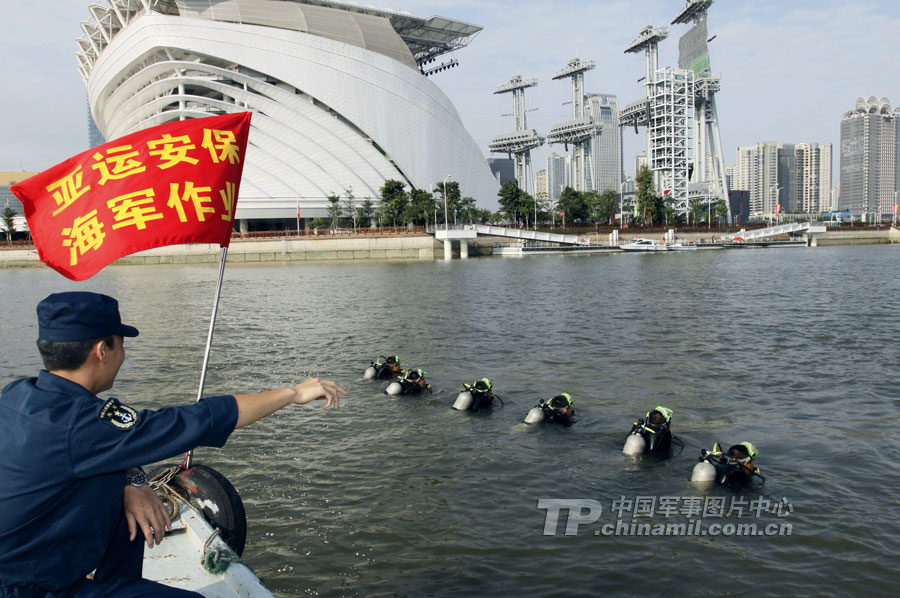 副指揮員趙蹇黎表示:“我們這支部隊(duì)在2008年已圓滿完成了對北京奧運(yùn)會、殘奧會水下安檢任務(wù),這是我們第二次參與大型運(yùn)動(dòng)會水下安保工作。雖然此次作業(yè)水域面積大、水質(zhì)差、水流急、水下目標(biāo)復(fù)雜、能見度差等諸多不利因素,但官兵們一致認(rèn)為,不管困難有多大,任務(wù)有多重,服務(wù)亞運(yùn)是一次光榮而艱巨的政治任務(wù),我們將貫徹落實(shí)上級指示,提高認(rèn)識,盡心盡責(zé),保證圓滿順利地完成各項(xiàng)任務(wù)!”
