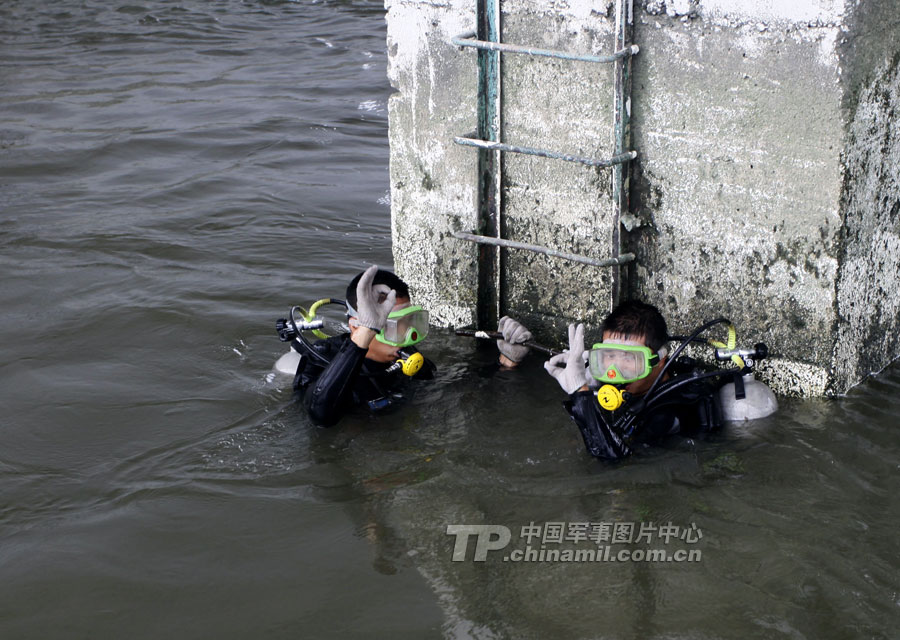 “水下就是戰(zhàn)場,安檢就是打仗”、“不怕流血流汗,確保水下安檢萬無一失!边@是蛙人官兵們的共同心聲。