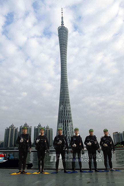連日來,一支行頭特別的“蛙人”隊(duì)伍出現(xiàn)在廣州市番禺亞運(yùn)城水域,他們身著黑色連體服,肩背氣瓶,腳踏巨大的“腳蹼”,引人注目。