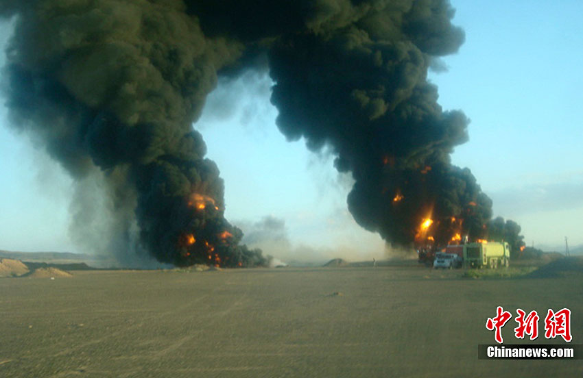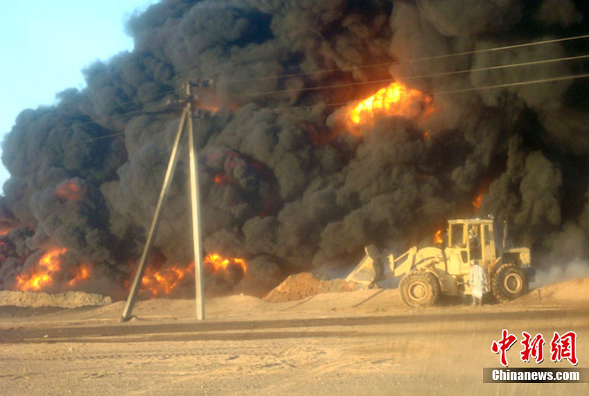 當(dāng)?shù)貢r(shí)間11月2日,在也門(mén)南部省份舍卜沃,輸油管道被炸后燃燒升起濃煙。也門(mén)安全官員當(dāng)日說(shuō),“基地”組織武裝人員當(dāng)天炸毀了也門(mén)南部舍卜瓦省一條主要輸油管道,但未導(dǎo)致人員傷亡。