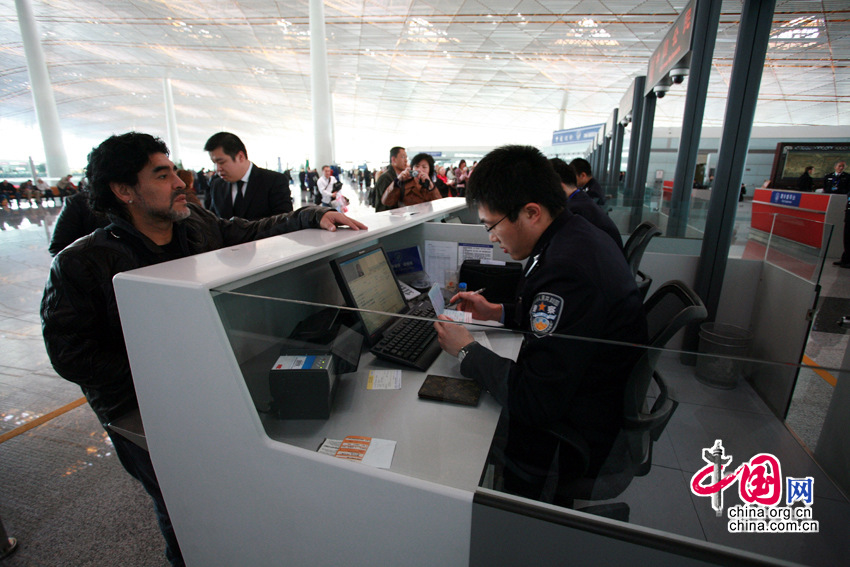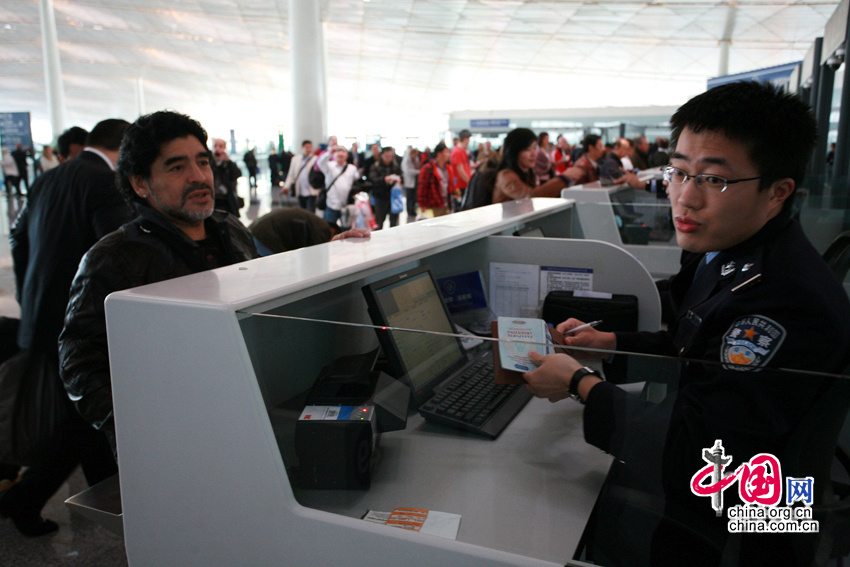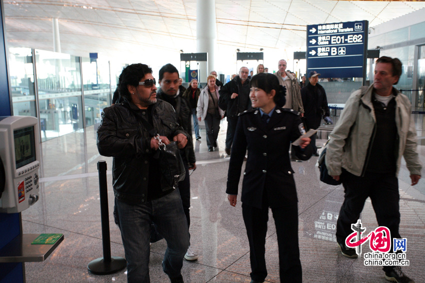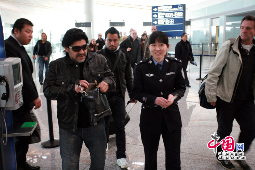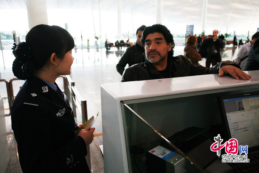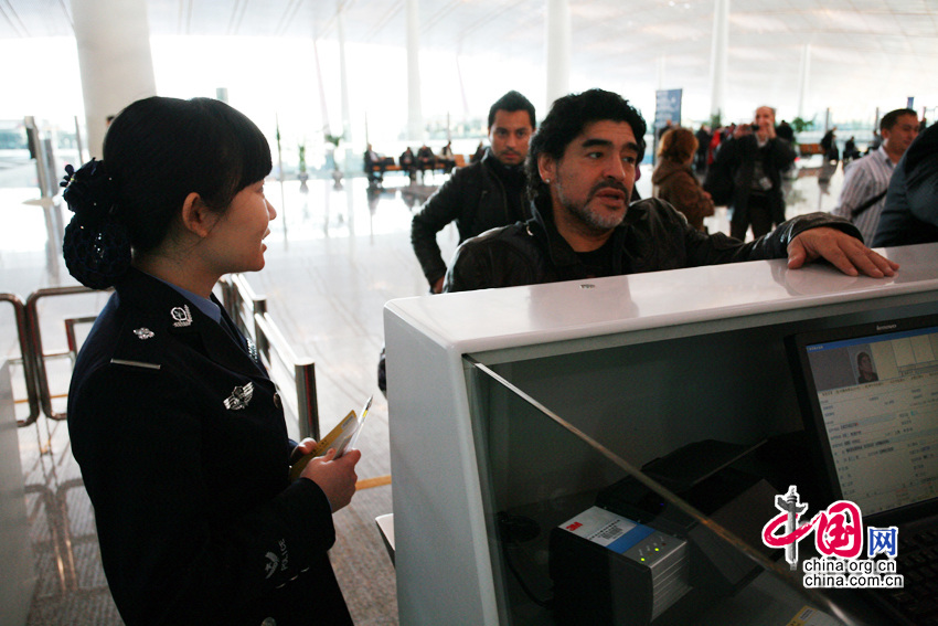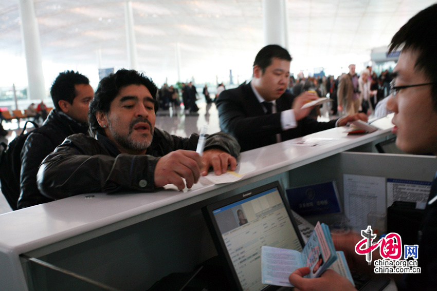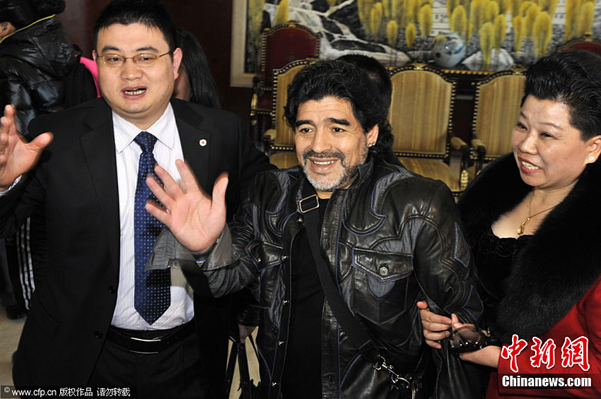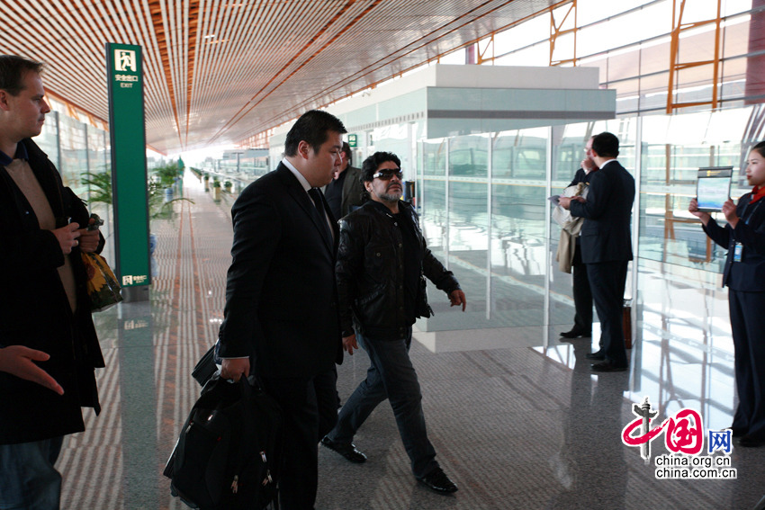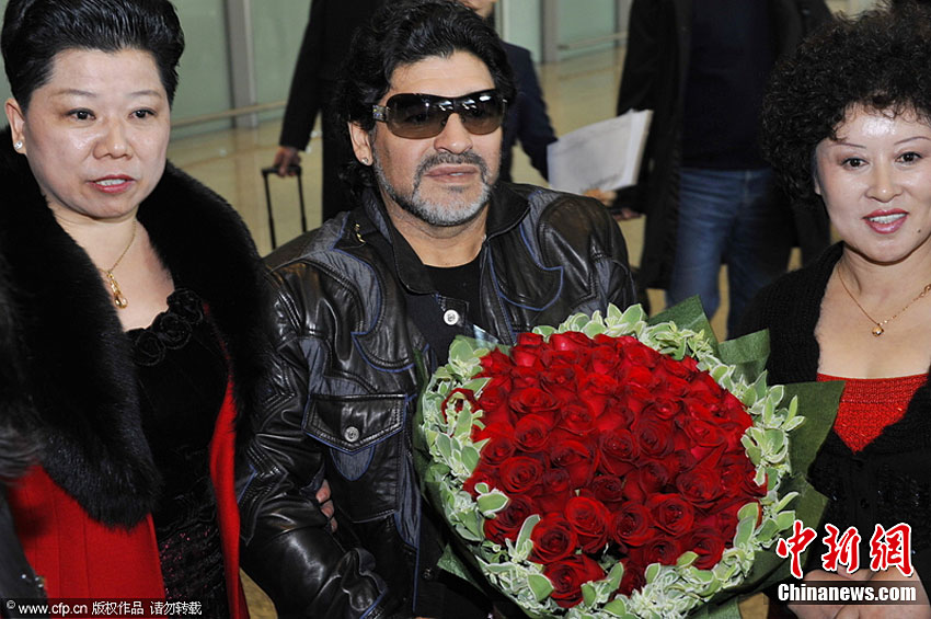 11月3日,北京首都機(jī)場,“球王”馬拉多納抵達(dá),即將開展慈善之旅。老馬在接受記者采訪時(shí)表示,沒有意向執(zhí)教中國的某支足球隊(duì),若要執(zhí)教開價(jià)會很高。他還表示,自己已經(jīng)一年多沒有休假了,一直在為國家的足球事業(yè)效力。圖片來源:CFP視覺中國