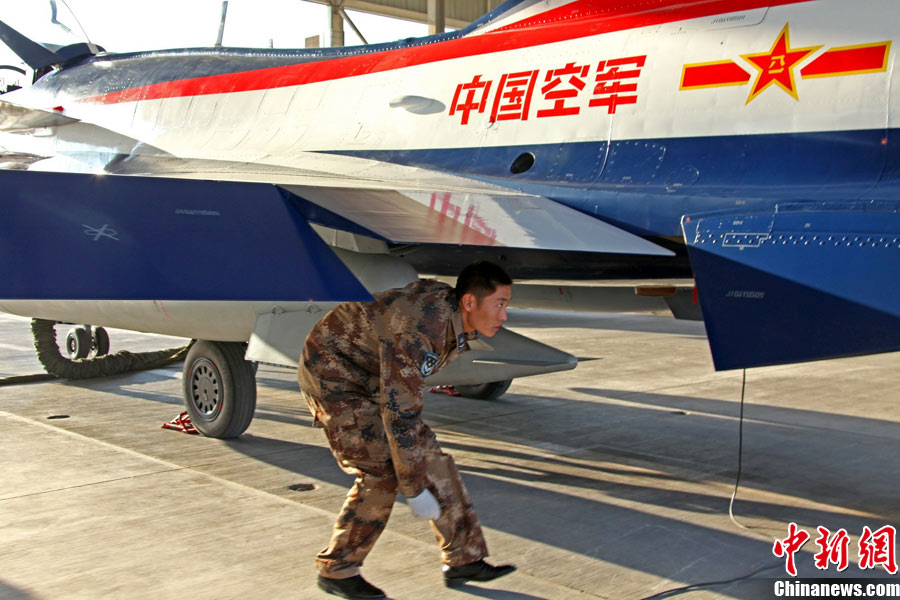11月初,中國空軍八一飛行表演隊新涂裝的殲10飛機雙機起飛?哲姲艘伙w行表演隊7架殲—10戰(zhàn)機近日將飛赴珠海,參加11月16日至21日舉行的第8屆中國國際航空航天博覽會(珠海航展)。這是表演隊換裝殲—10戰(zhàn)機后,首次以新涂裝向世人正式亮相?哲娺將派出殲—8F、殲轟—7A、轟—6H、空警—200、直—8KA、直—9WA等7型飛機,參加這次國際性綜合航展。中新社發(fā) 譚超 攝