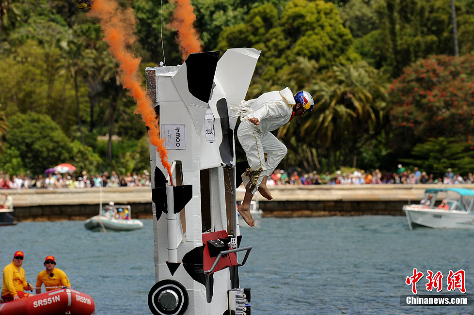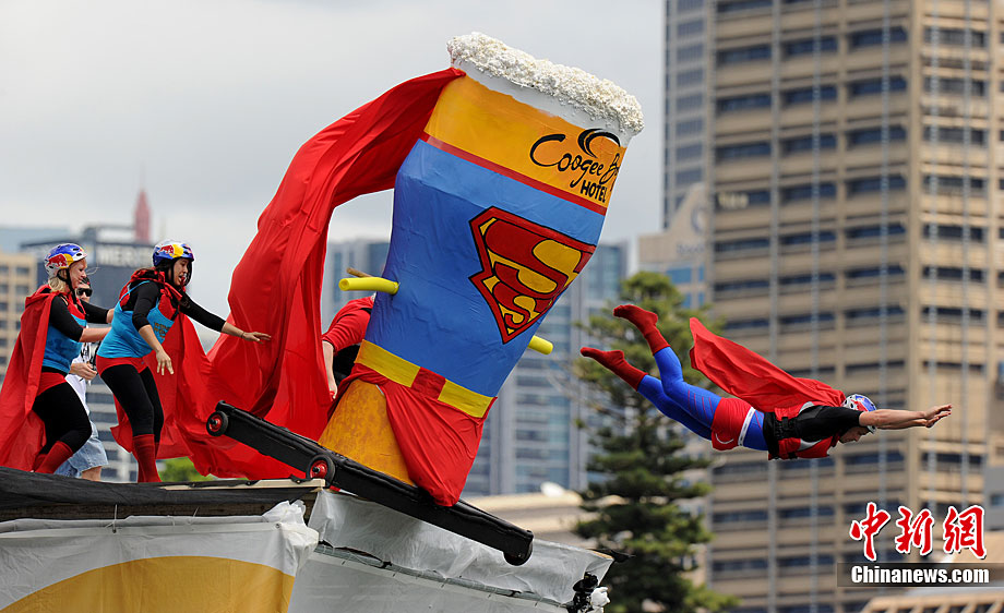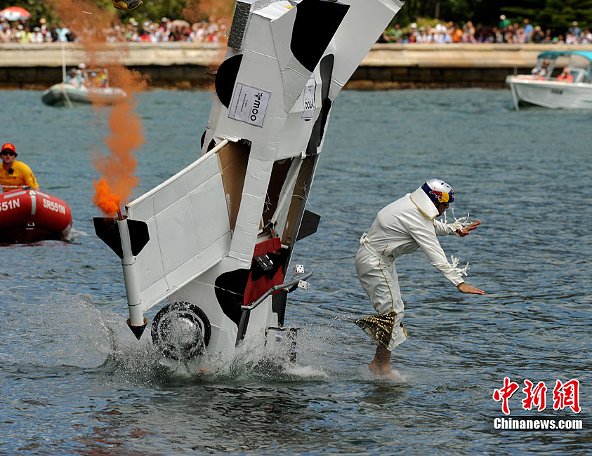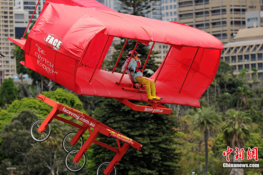 11月7日,在澳大利亞悉尼舉行了搞笑的紅牛杯“鳥人”大賽。據(jù)報道,這項賽事1991年起源于奧地利維也納,參賽選手自制人力飛行器從高臺起飛并最終躍入水中,飛行距離最遠(yuǎn)者獲勝。